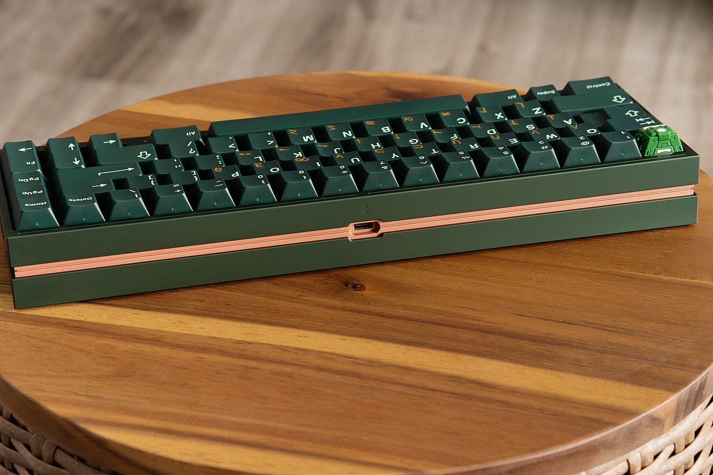 Right on the front face, because of the asymmetrical face and limited space of 65%, I only added a very subtle line on the top of the bezel, along with a diamond shape engraving in the middle.
