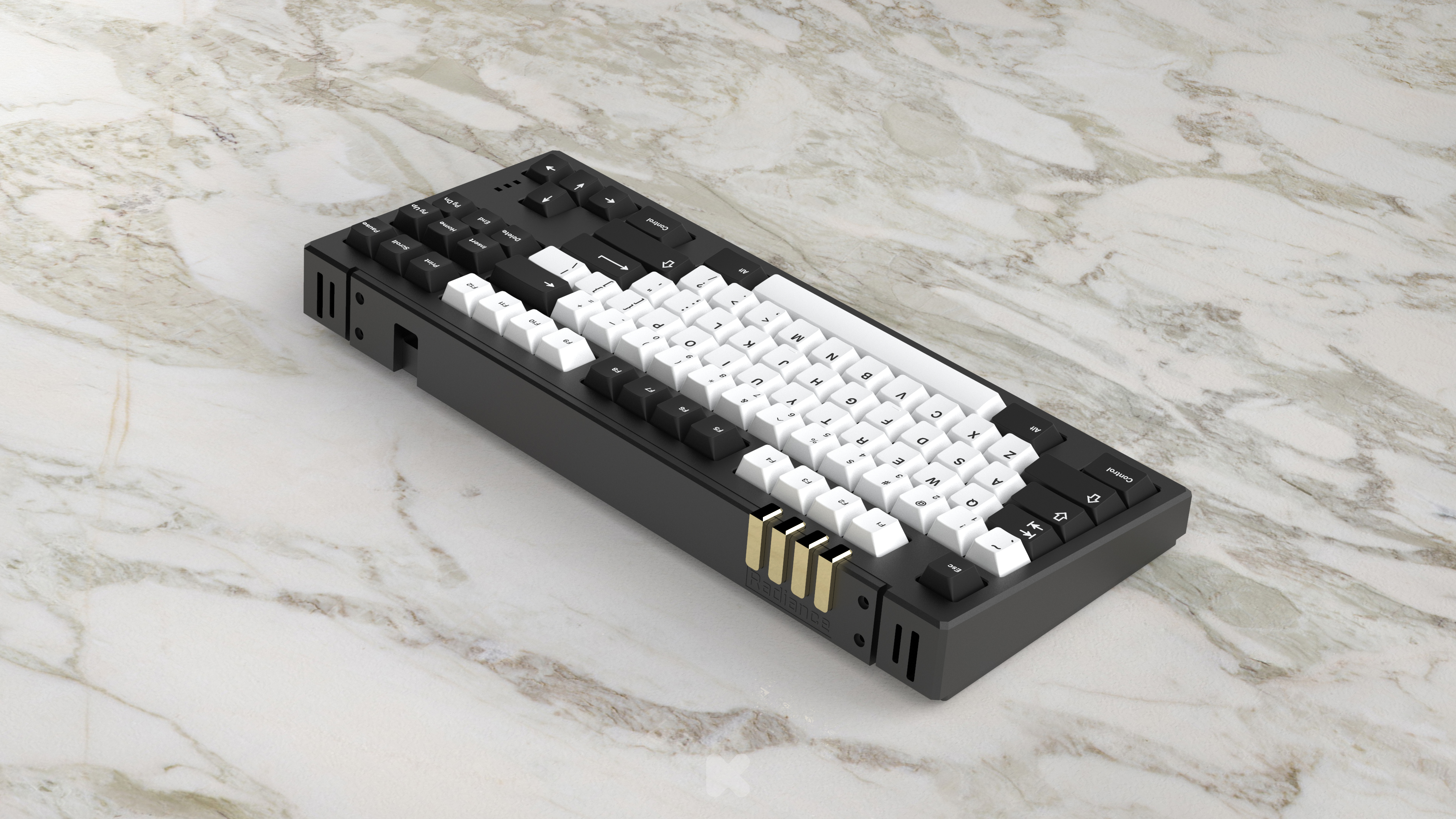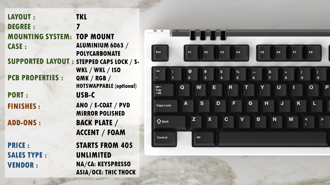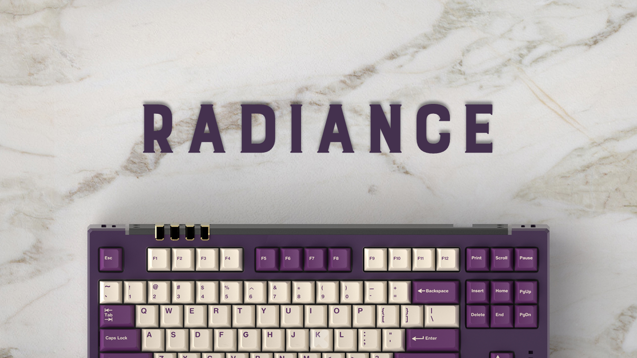 Radiance, as the name suggests it means radiating light, it is a 80% TKL, adopting the common top mount design with a typing angle of 7 degree. Despite the it looks complex, the ability to customize your board is very high.