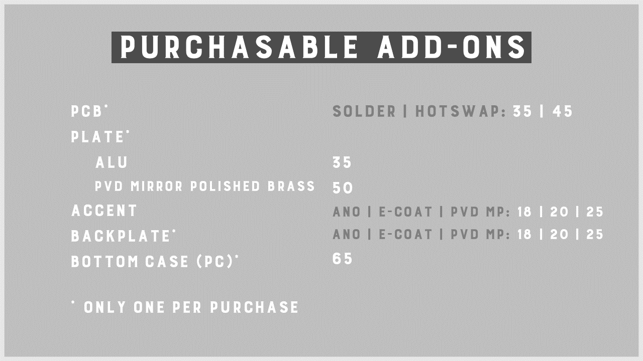Dissection of RadianceThe 4 accent bars on the top left corner are all independent, you could purchase extra accent bars, or exchange yours with your friends to customize the board to suit your own taste. Given the options available for pick up, the possibilities are endless. Imagine the ability to swap the accent bar to accommodate to your keyset, matching the theme as a whole board, that's the crux of custom board!