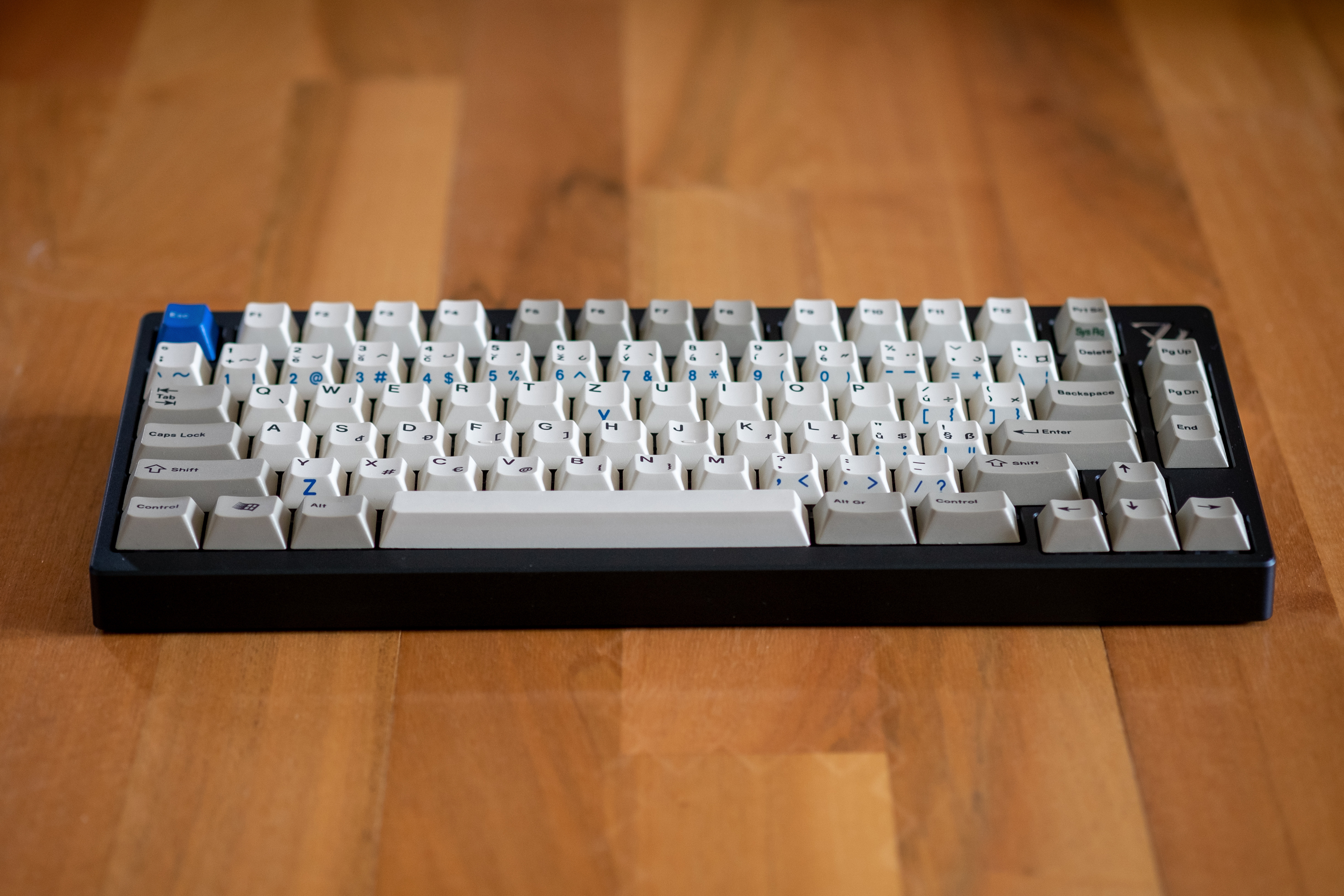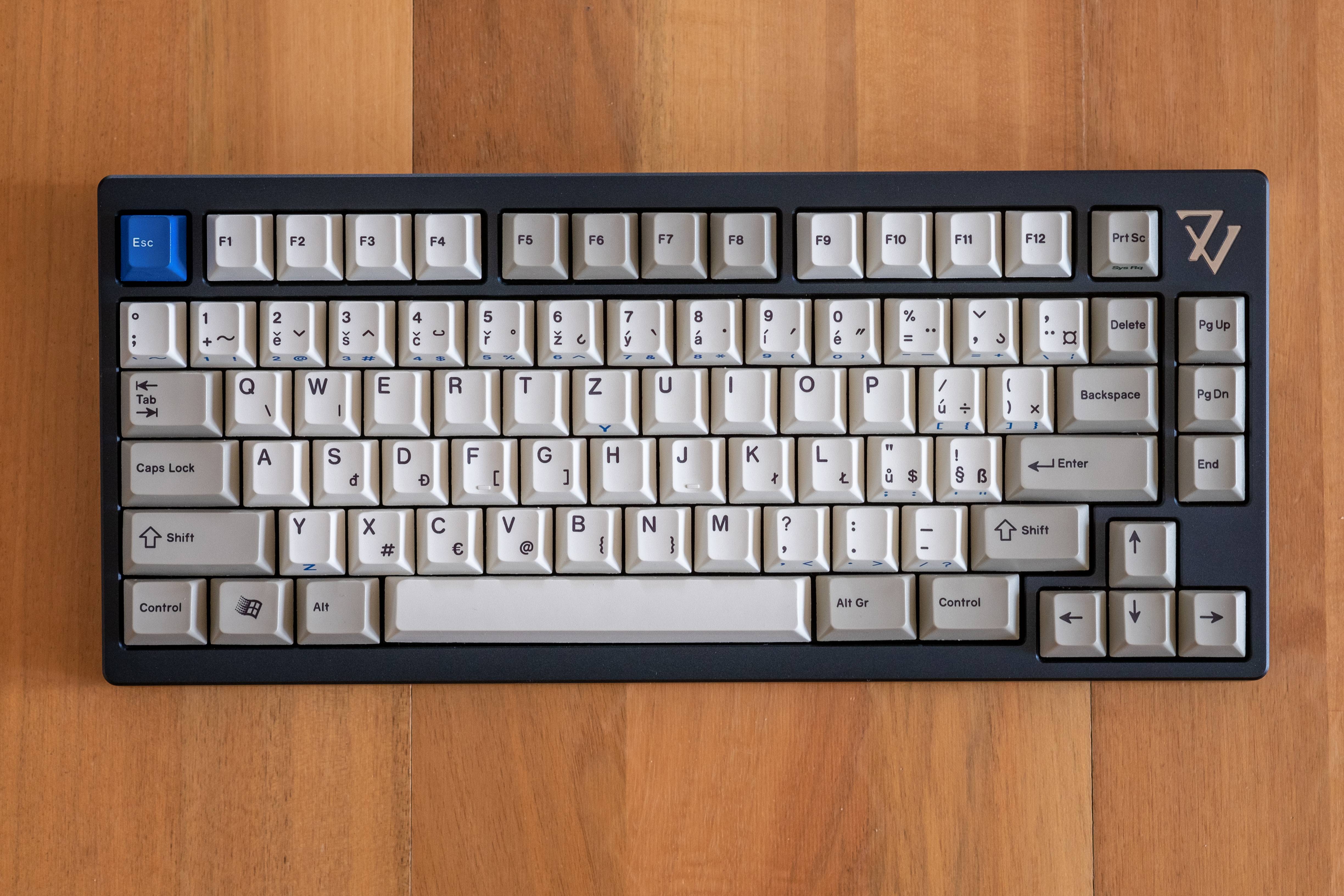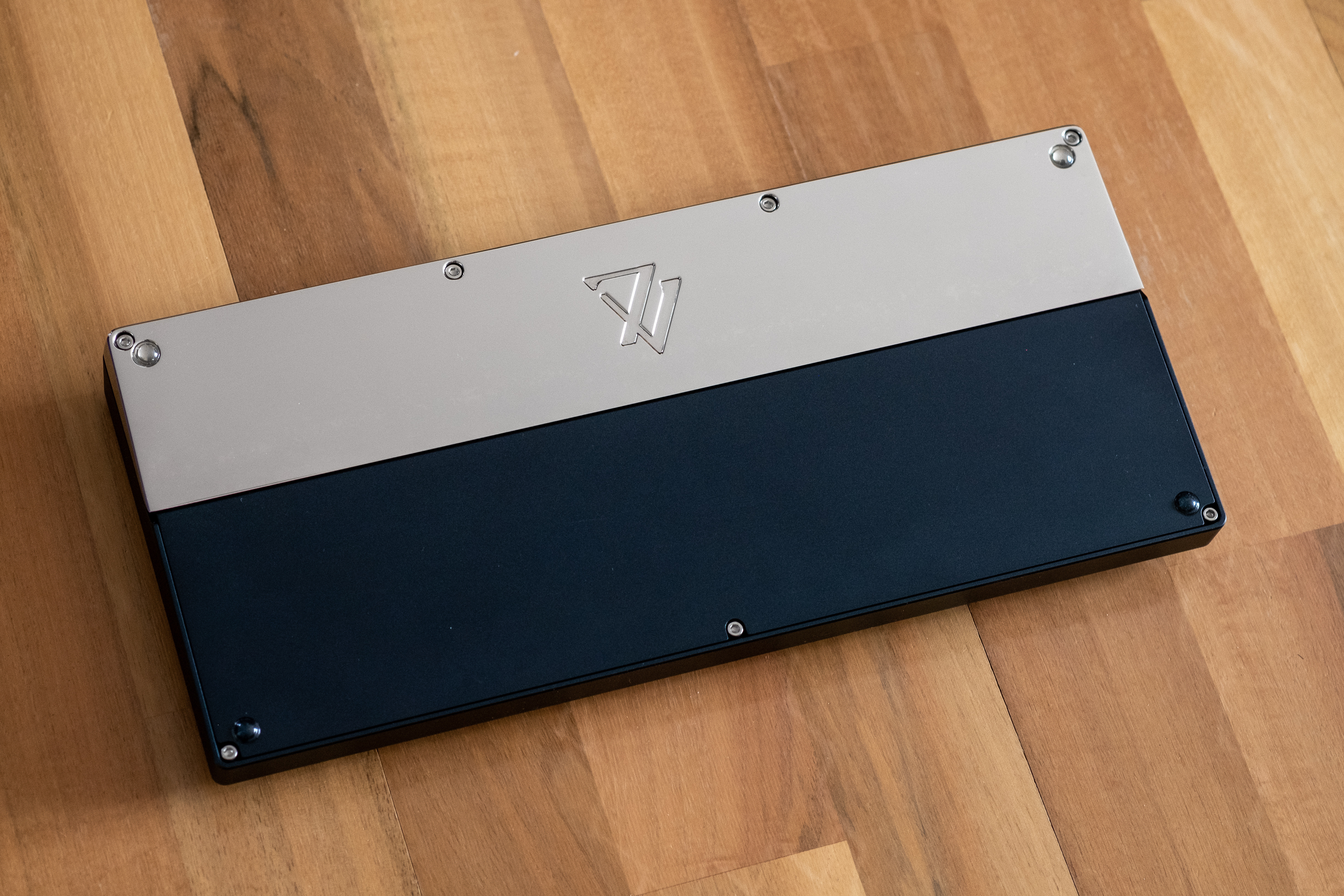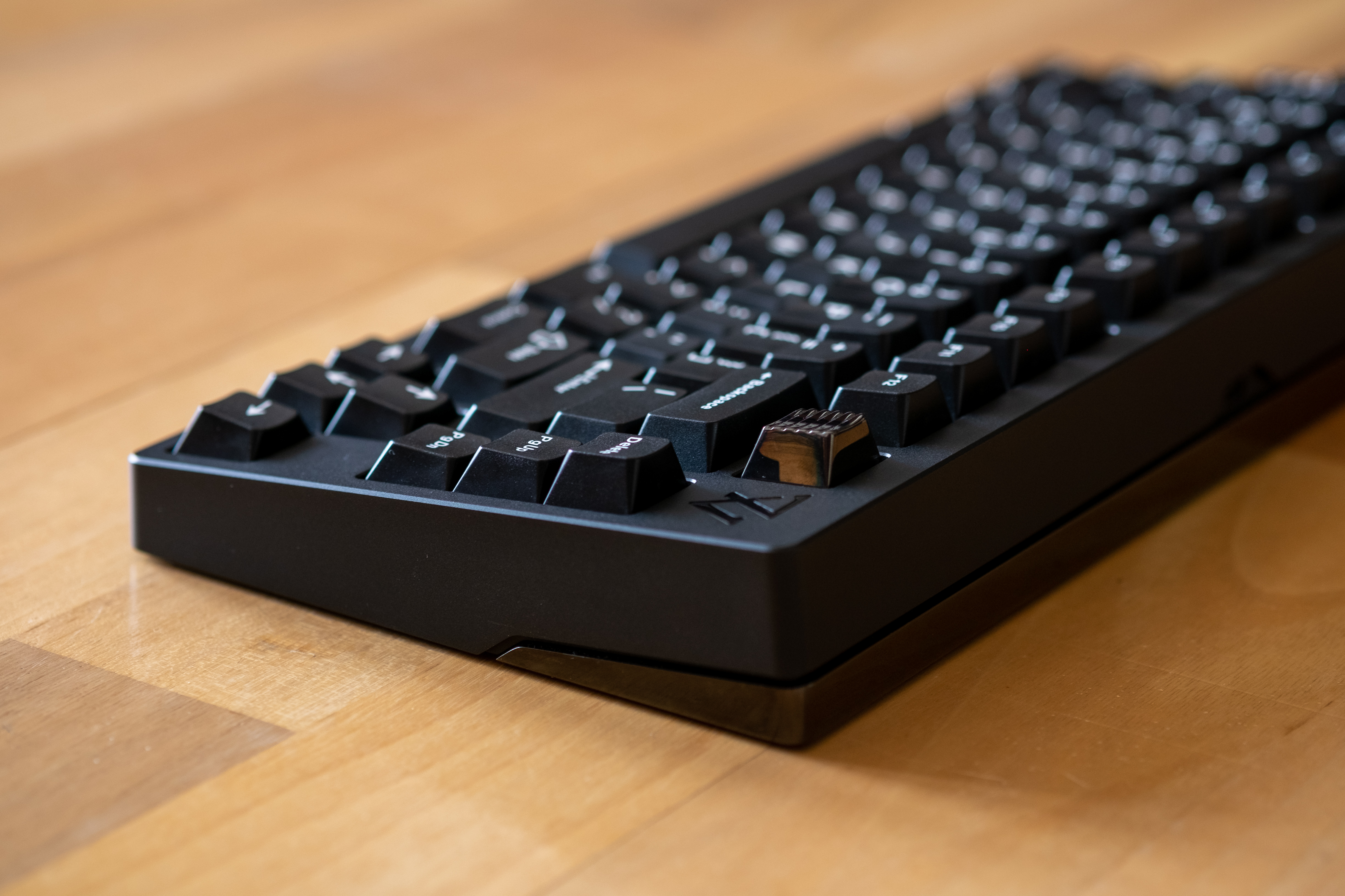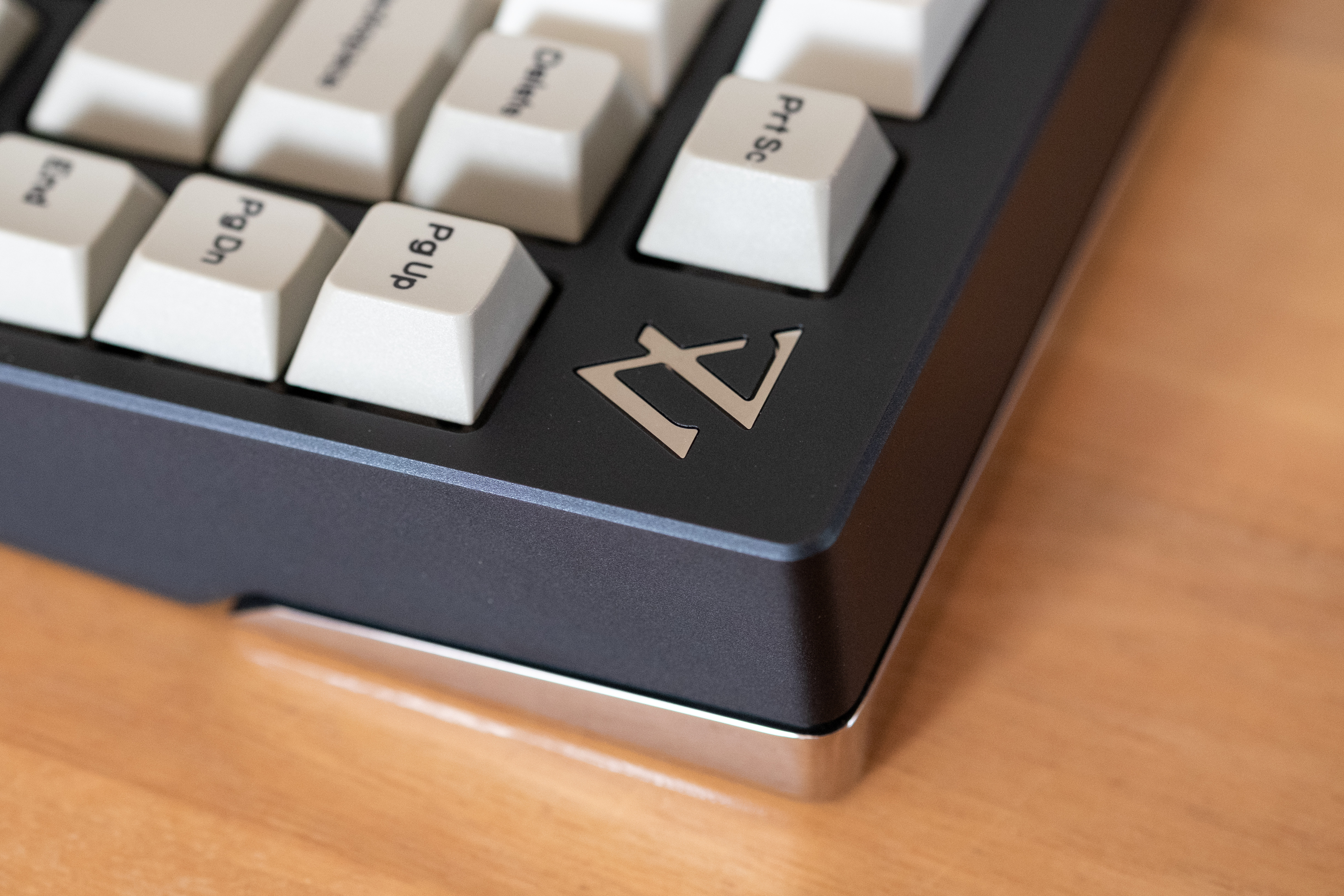 Grey with raw polished stainless steel weight and logo - GMK Oblivion keycaps