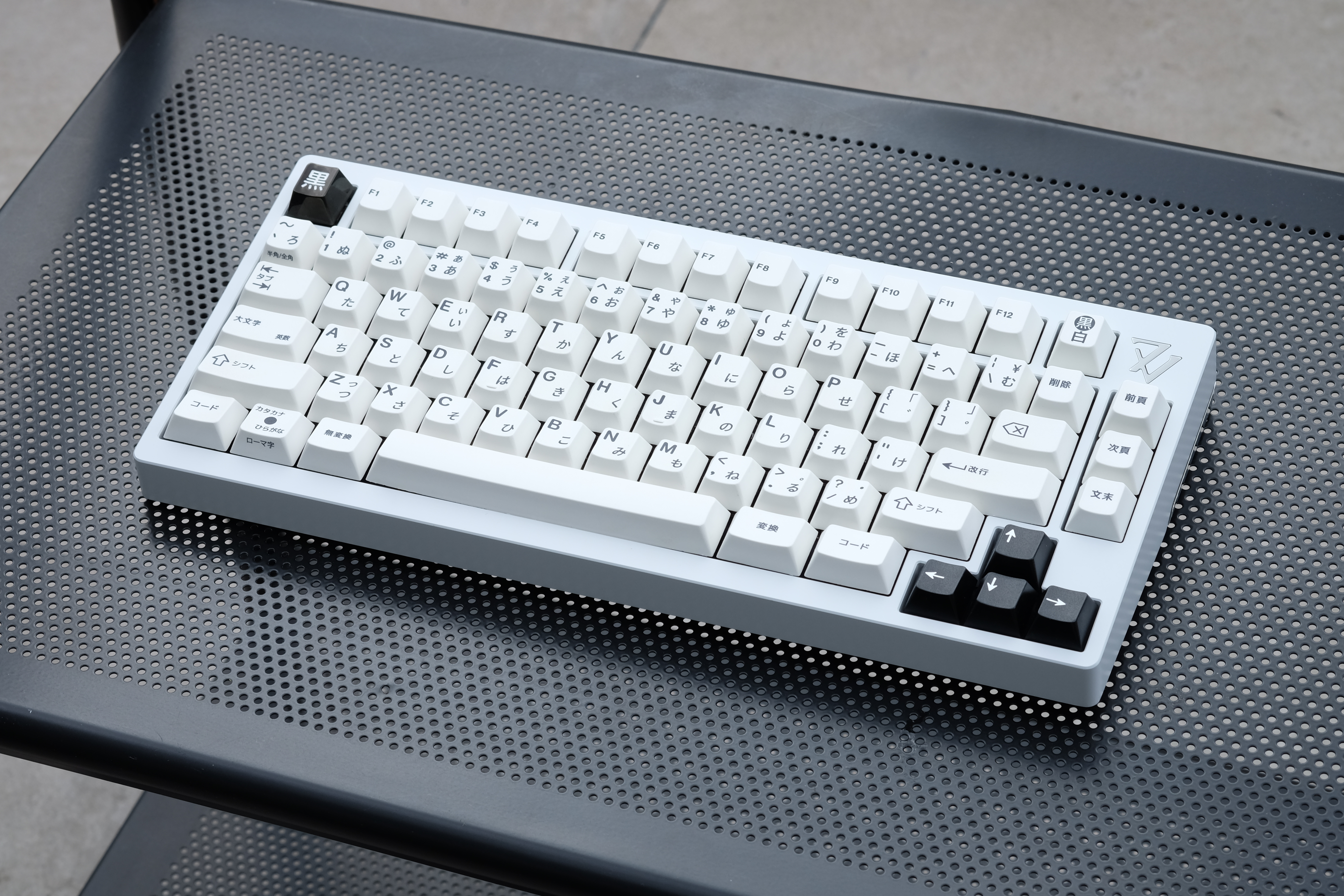 Black with black PVD stainless steel weight and logo - GMK White on Black keycaps