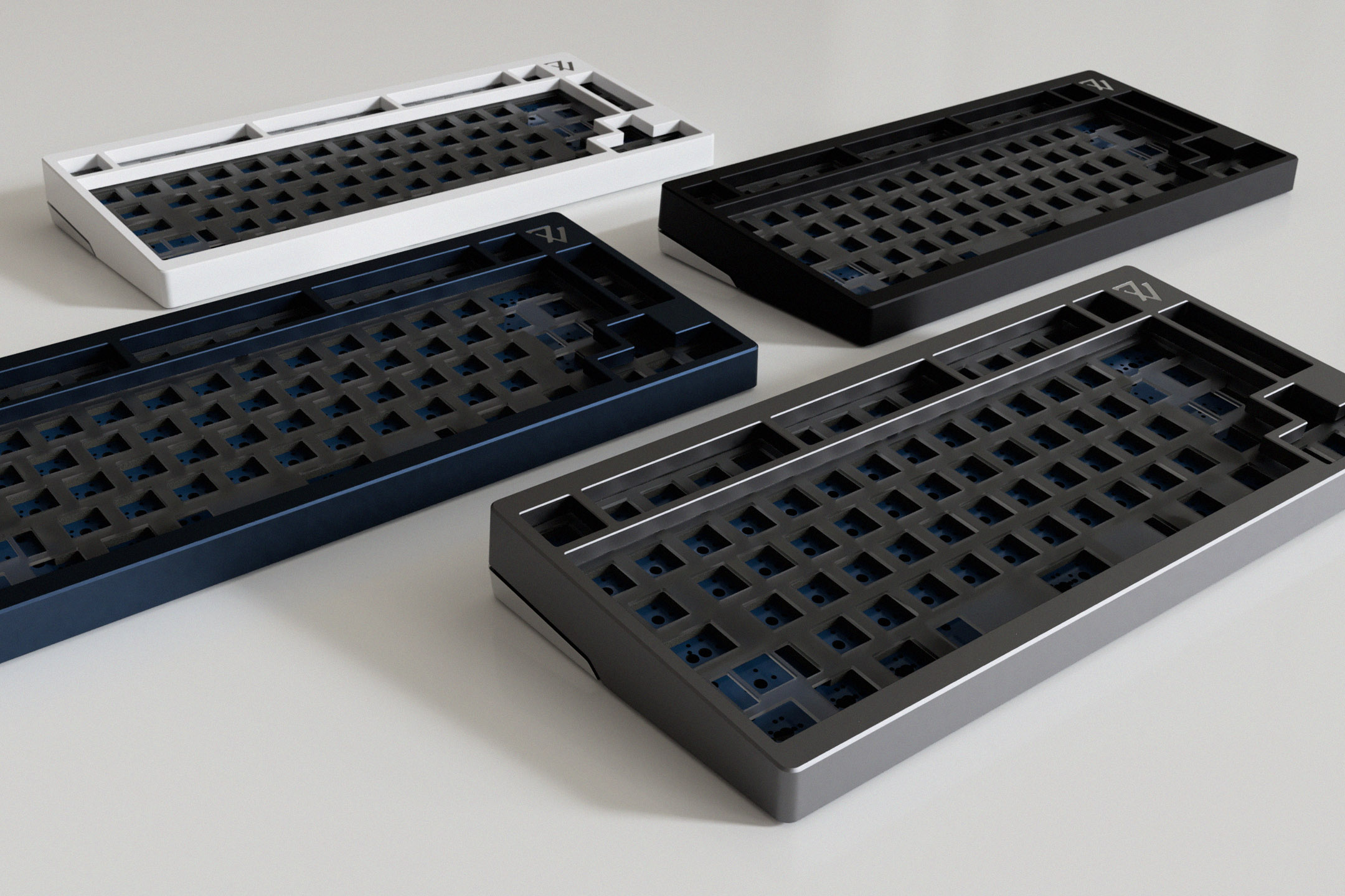 Can you explain the mounting system? This is primarily a PCB mounted keyboard. Instead of fixing the plate to the chassis and having the PCB float, this reverses the arrangement and has contact between the PCB and chassis and the plate sits on top of the foam. The little legs, dubbed "leaf-springs", provide flex that gives a softer typing experience.