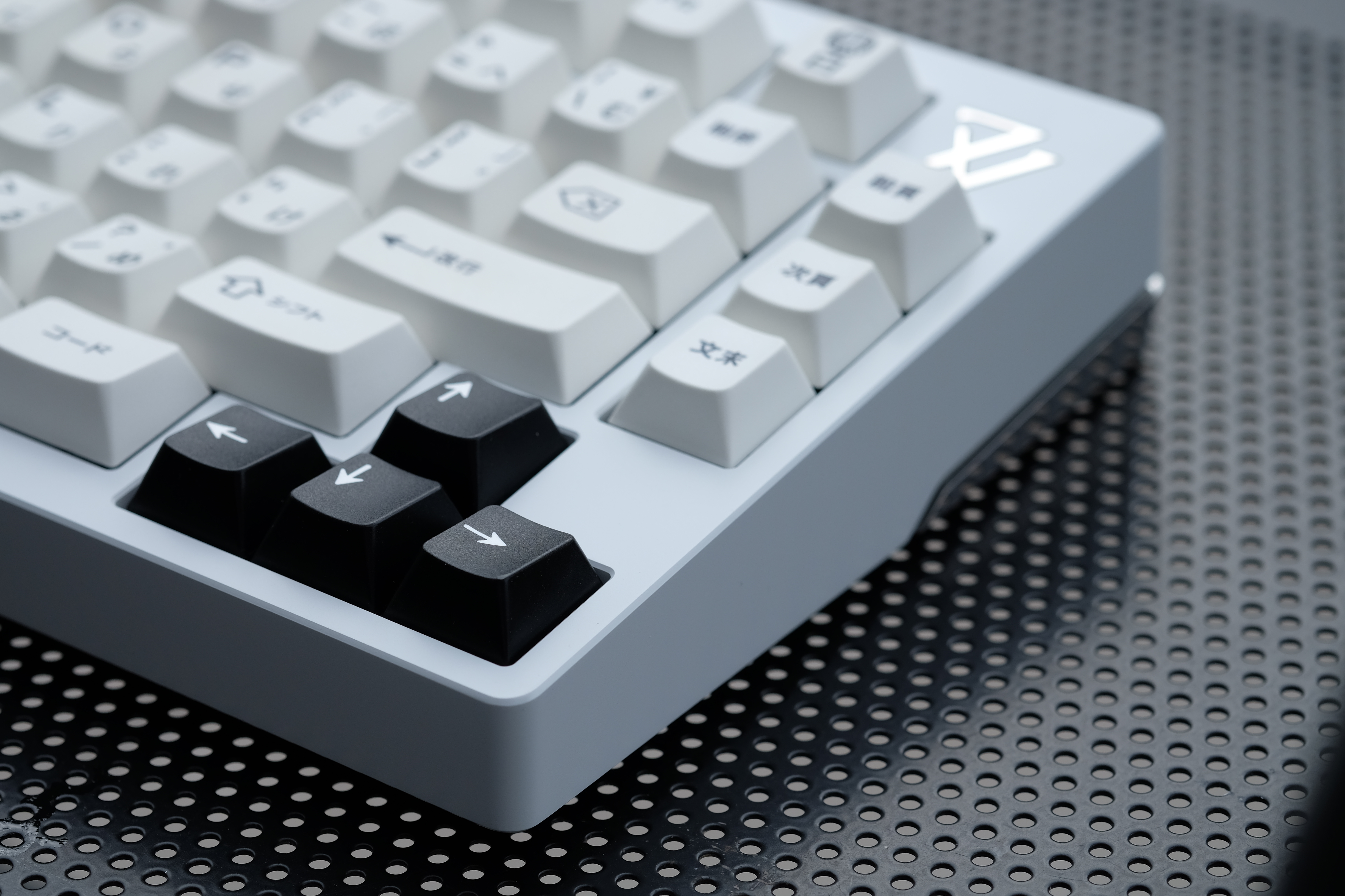 E-White with raw polished stainless steel weight and logo - Enjoypbt Kuro/Shiro keycaps