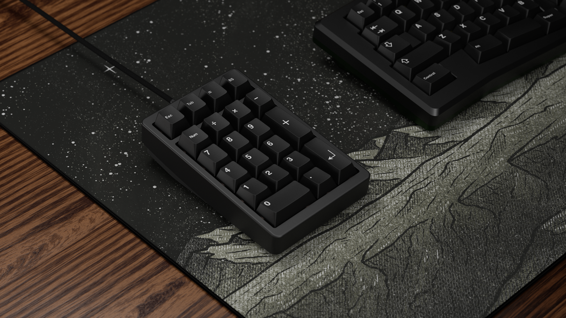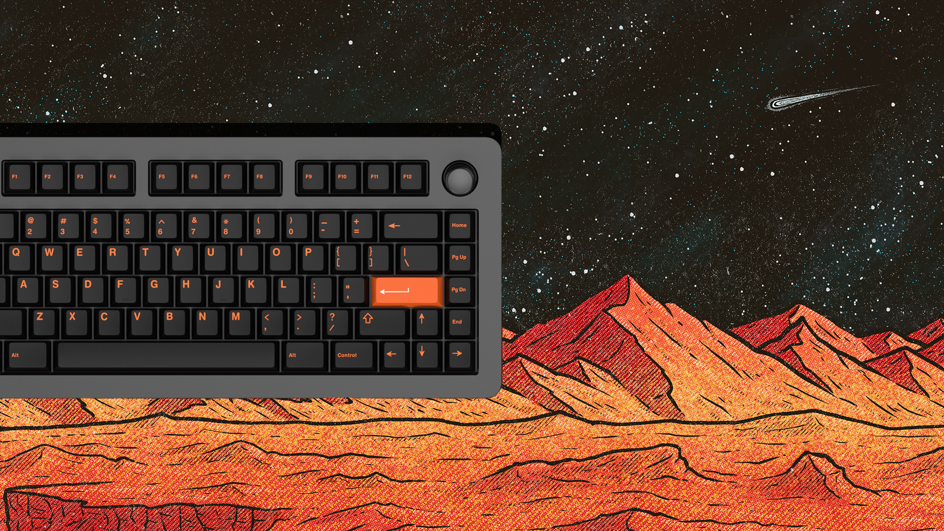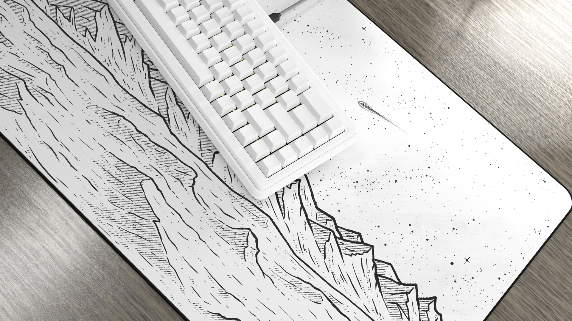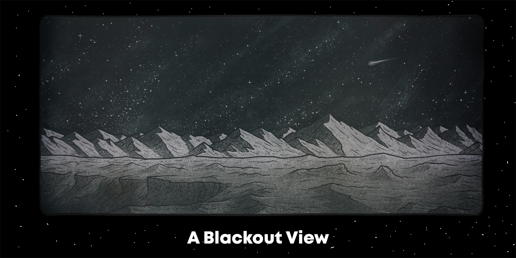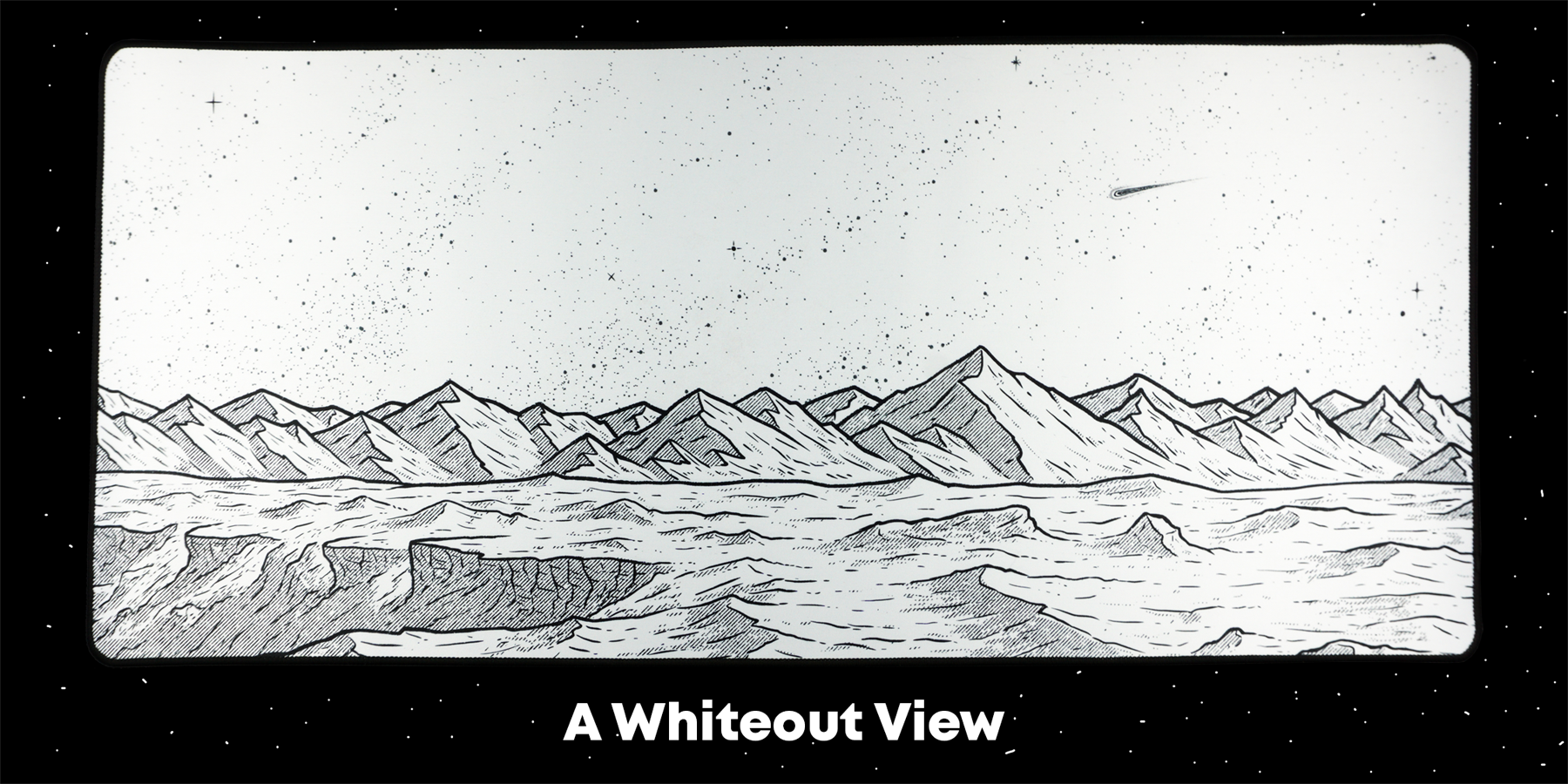 The designs are texture-filled and detailed versions of Mars in an old-timey Sci-fi style. I love the look of late 90's space illustrations and took them as inspiration. I was originally only going to do the Martian View, but after seeing a black and white version of it I knew a Blackout View had to be made. This also led to the whiteout and Spacedout Views which all make this design super compatible with tons of desk setups.