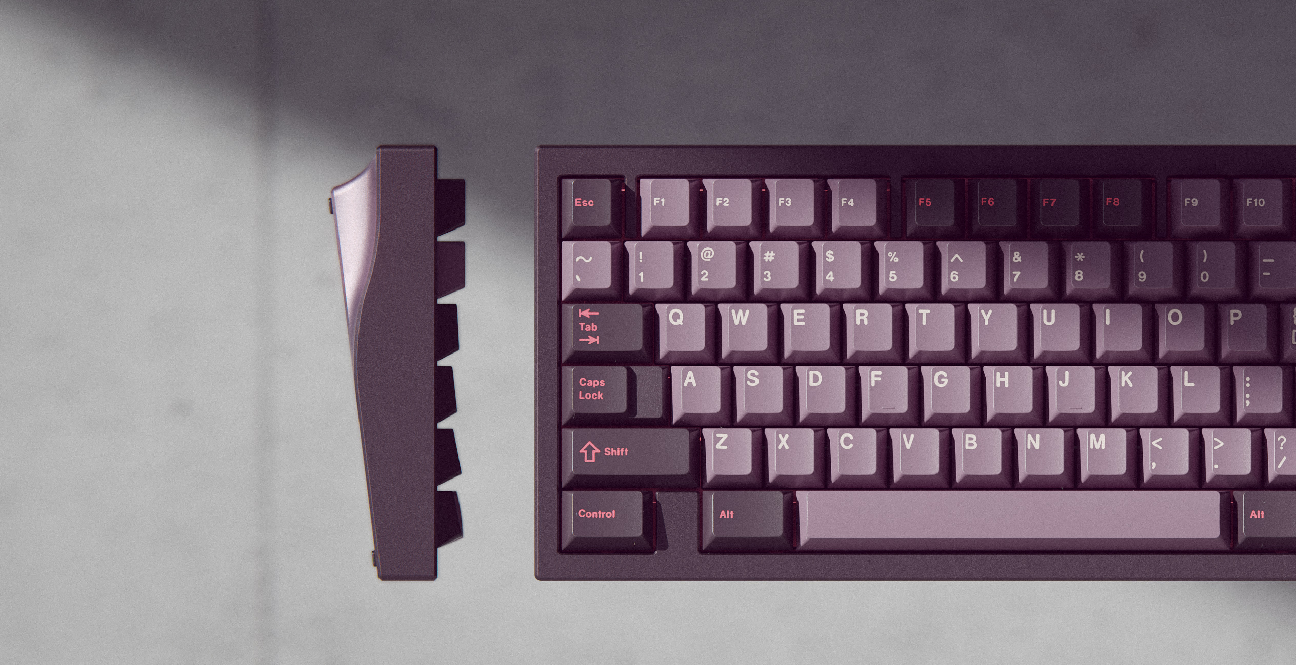 The Aella is a 75% “seamless/screwless” board that adopts a beautiful and unique side profile with clean, smooth curves and a compact design with a staggered F-row. In my opinion this is the optimal 75% layout aesthetically, while not compromising on function. I decided to go with a ‘screwless’ design to focus all attention on the sweeping curves of the side profile, as that is the real star of the show here.