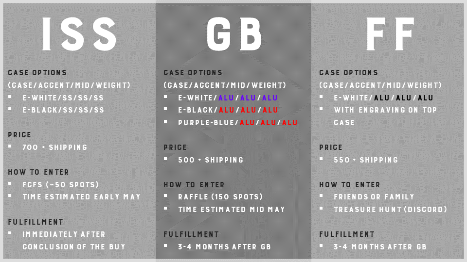 Hi! AKI-S is the first project that I'm fully involved in and calls are mainly made by me (while BOCC was collaboration with a friend). I chose to use AKI as my signature as it represents 2 of my favorite elements, Japanese culture and Autumn. Upon entering the custom scene, trying different kinds of layouts, I found that 65% is the one that I find it most likable. It's compact, it's packed with necessary utility that I wouldn't need to compromise too much by re-programming the needed keys. In light of that, I chose to use 65% as my first project.