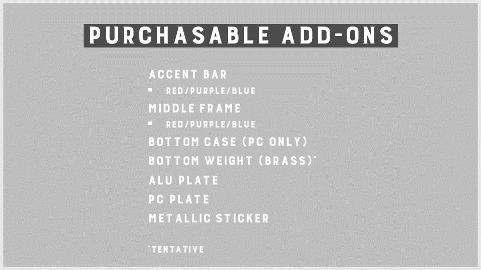 Gasket has been a heavily appreciated addition to the custom scene in the recent blooming community. I personally believe that a stronger and robust mounting system with solid case enclosure design will help alleviate the typing experience over adding a few gasket rubbers here and there to reduce the possible reverbs caused from typing. And thus gasket rubbers will not be adopted for this kit.