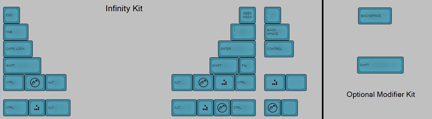 Colors for the kit are NN (black)/BX (Teal blue) and are done in double shot abs with a DCS profile so that it matches the majority of existing alps caps. Font for the caps will be Cherry.