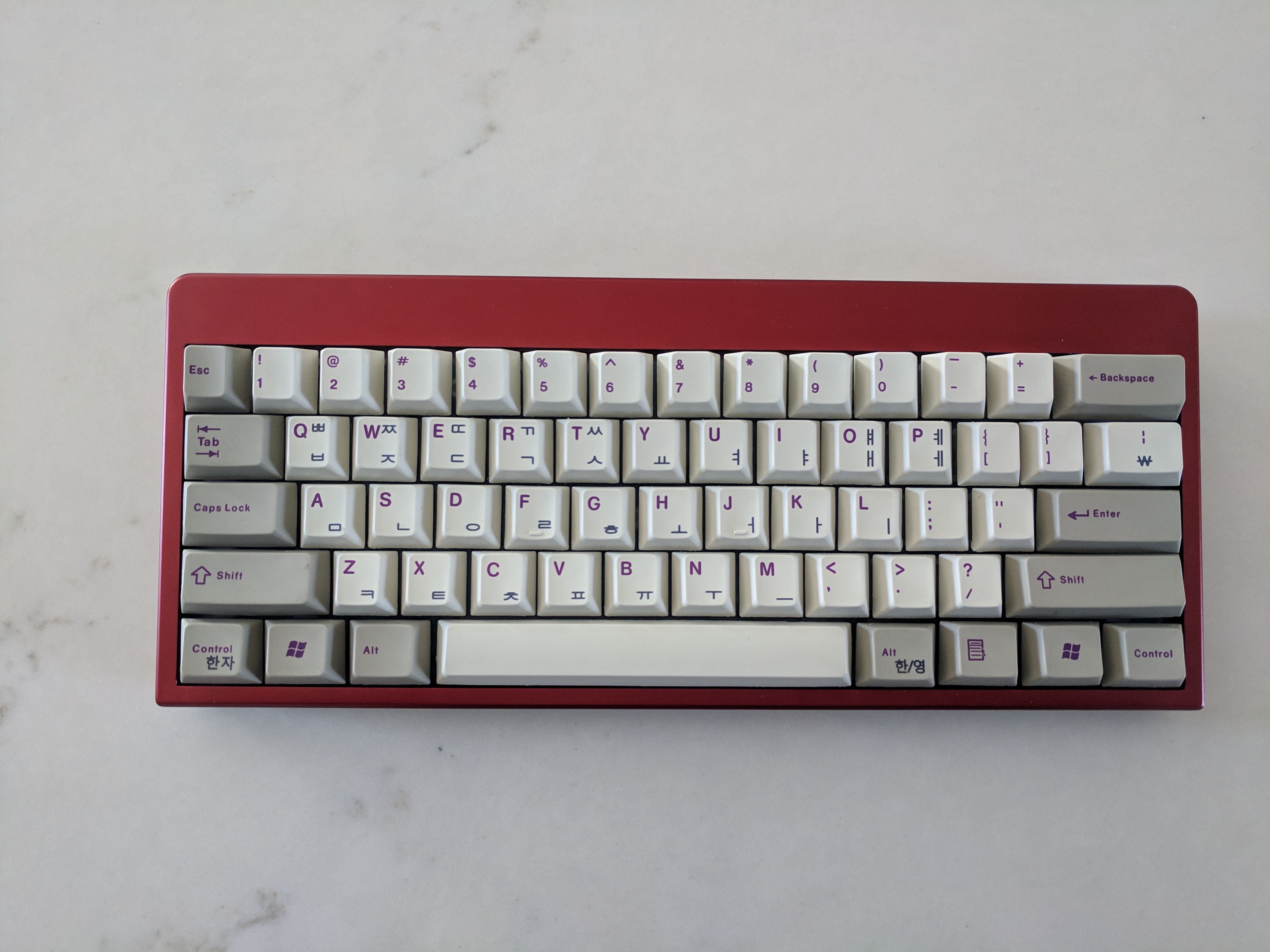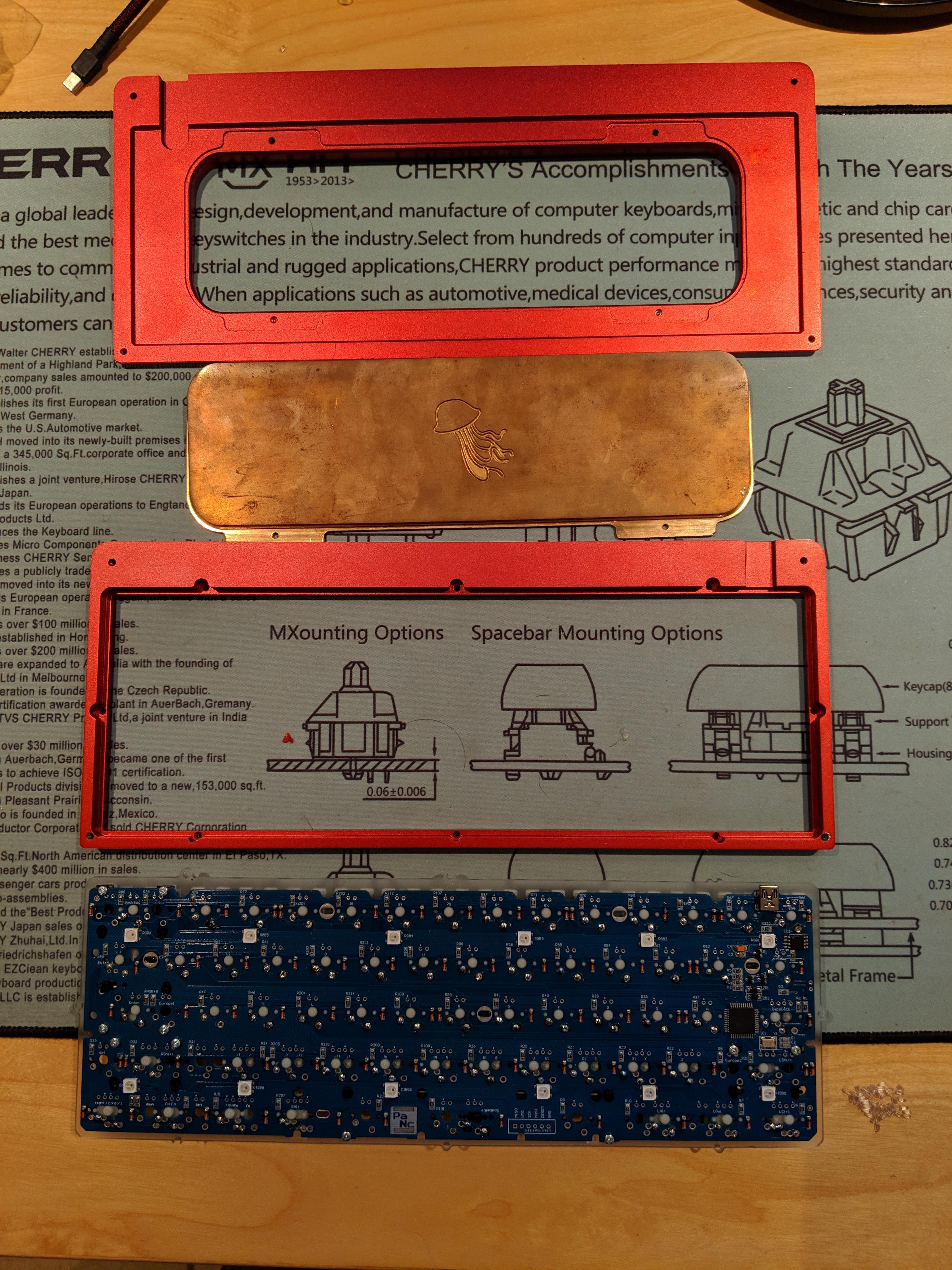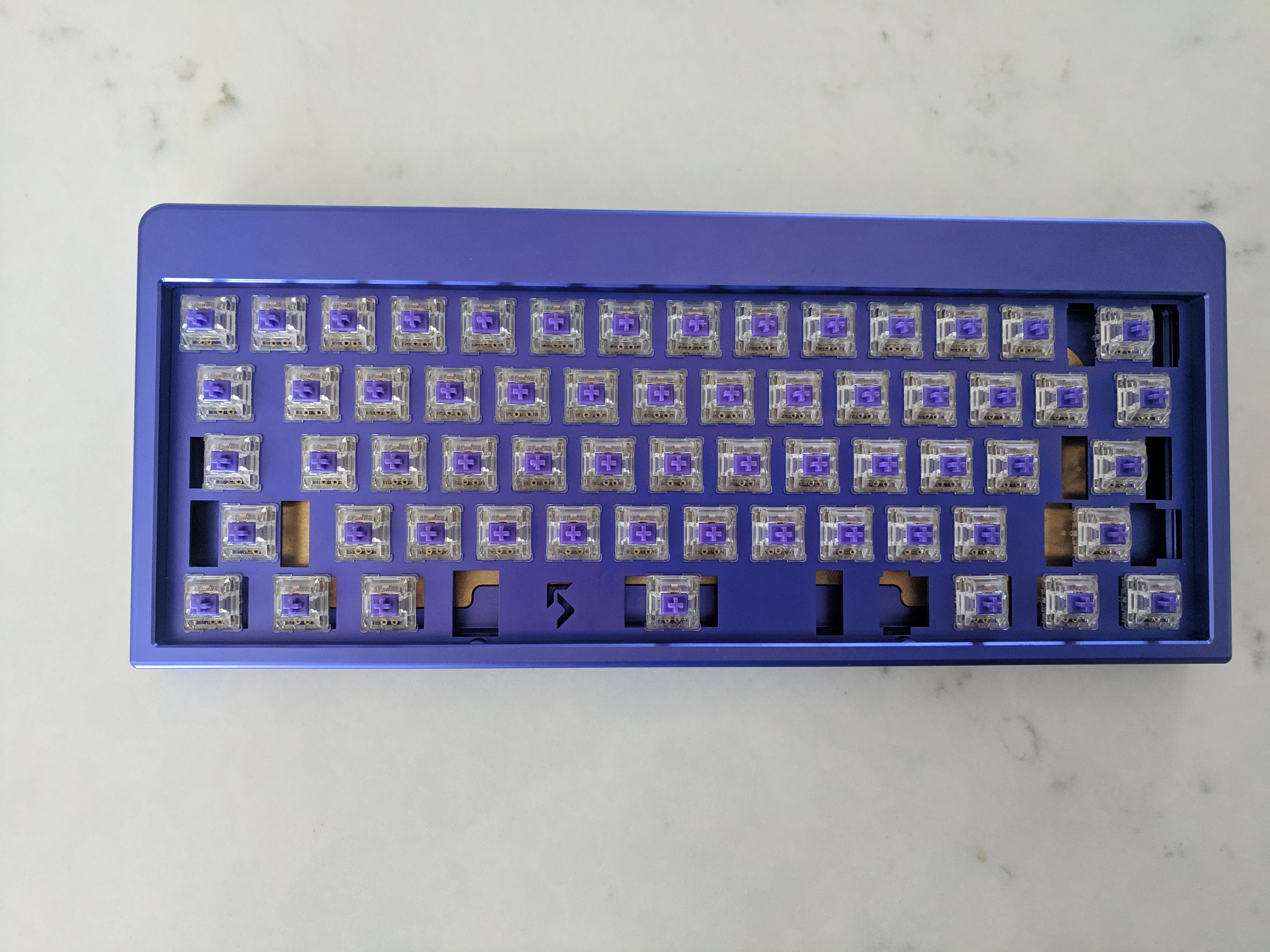 My buddy DeadEncryption built his Aquaria last night and here is a video (feature=youtu.be) and picture of it with a zeal60 pcb and gmk lazer