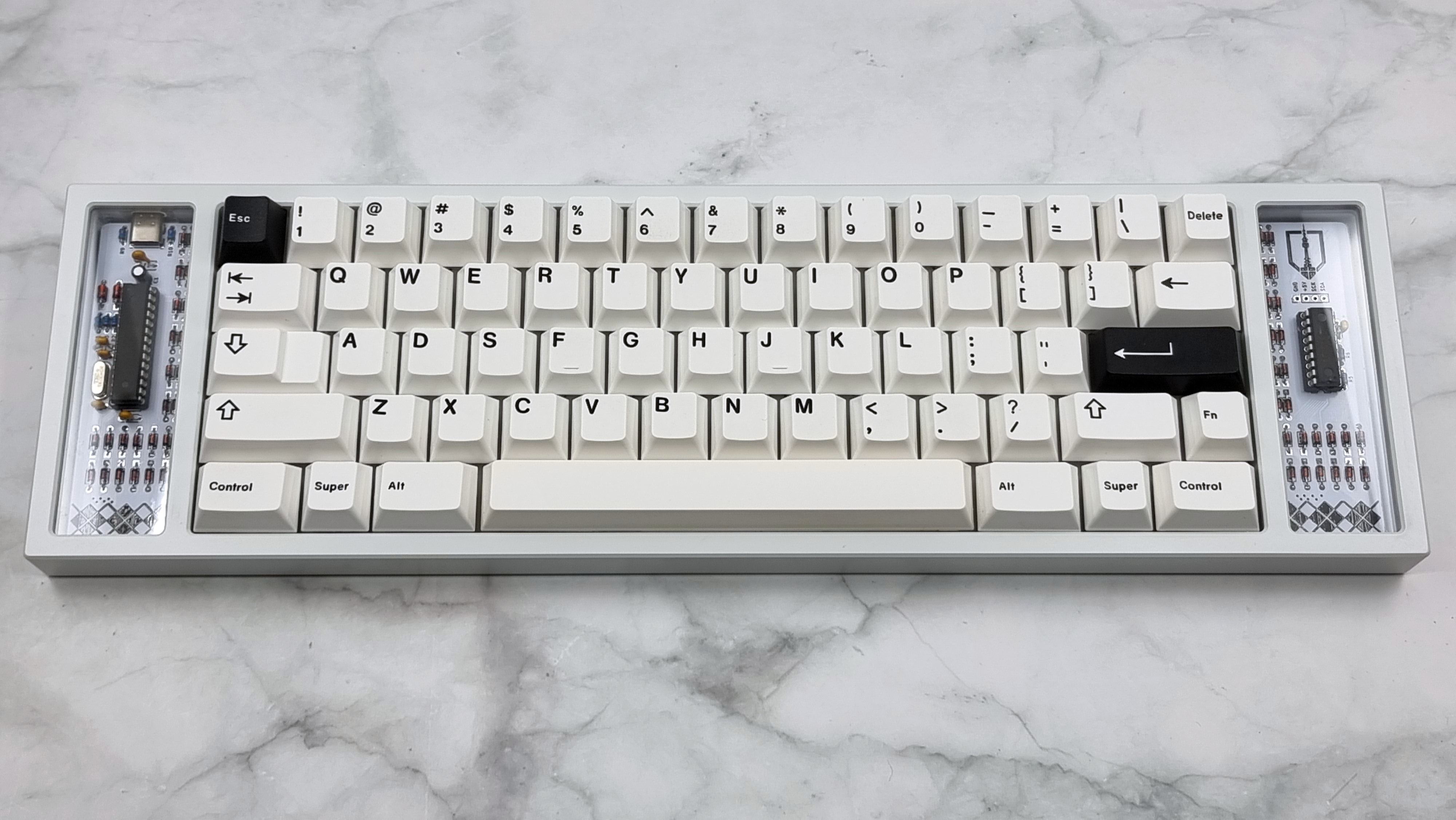 DesignTLDR: Pretty 60% keyboard with through-hole components on the sides.