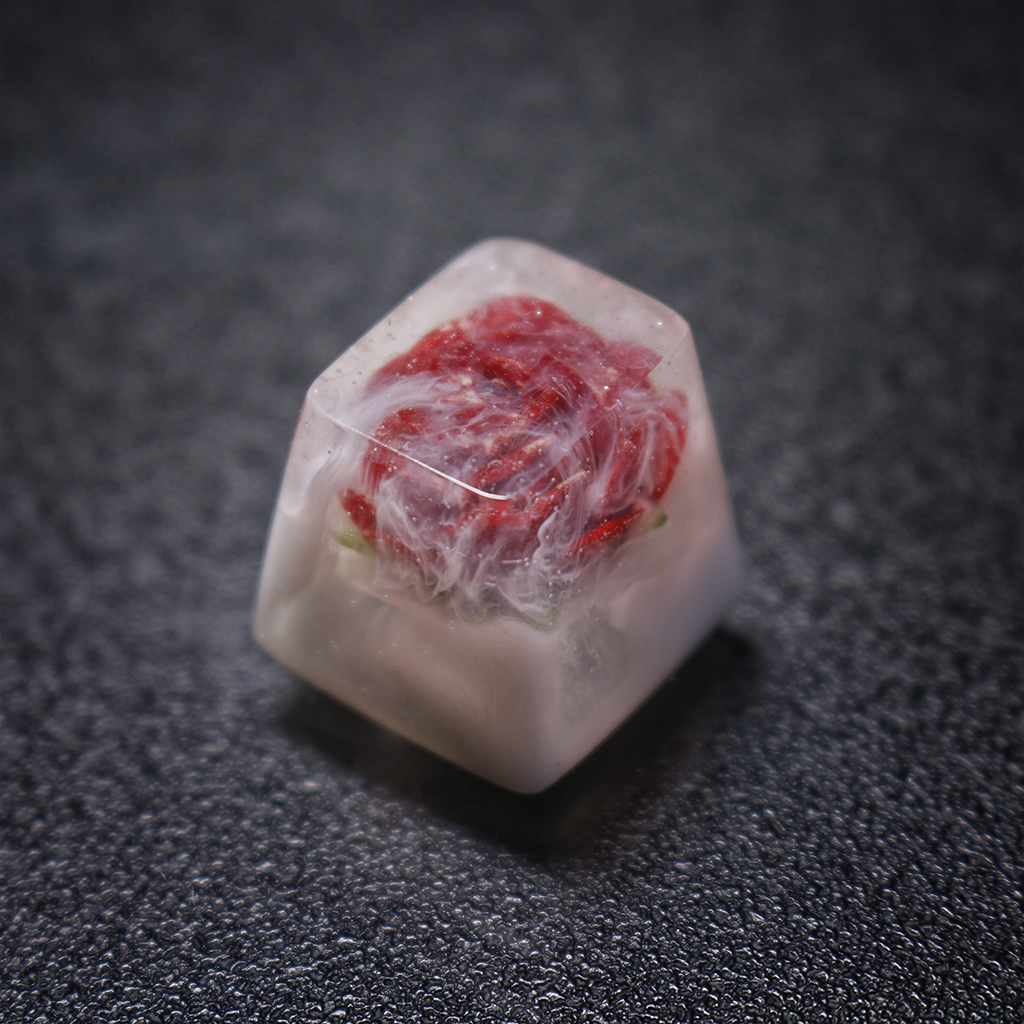 Inspired by roses in the fog, our artisans blew their souls from invisible clay into tiny flowers, and neatly placed in the keycap were also completely resin pouring. .
