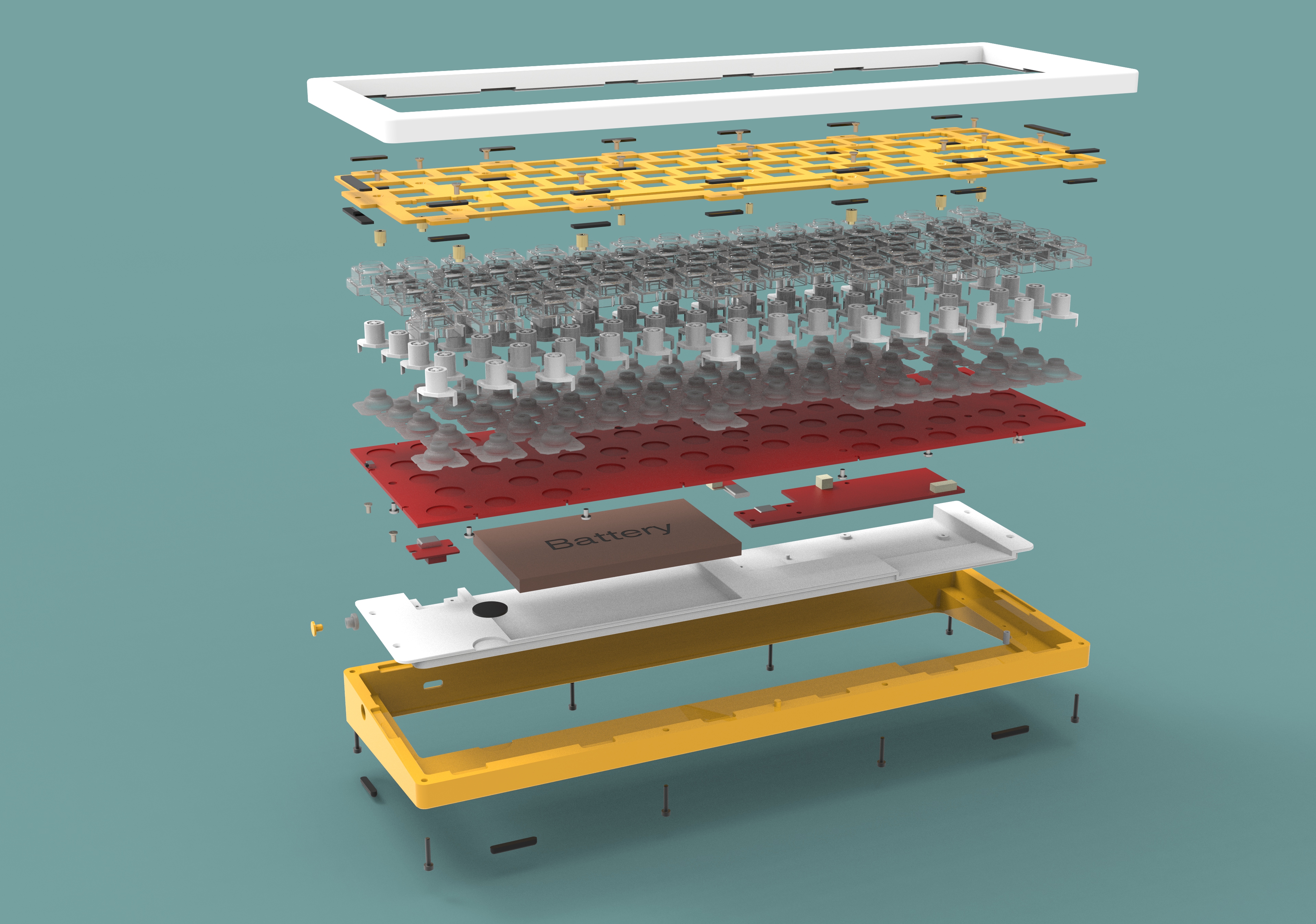 O Bluetooth & RGB version includes: electrostatic capacitive PCB, dome sheet (35g/45g/60g/65g options), electrostatic capacitive switches, o-ring,spring,and stabilizers (choice of Costar or Cherry-style plate-mount stablizers), 5000 mA battery