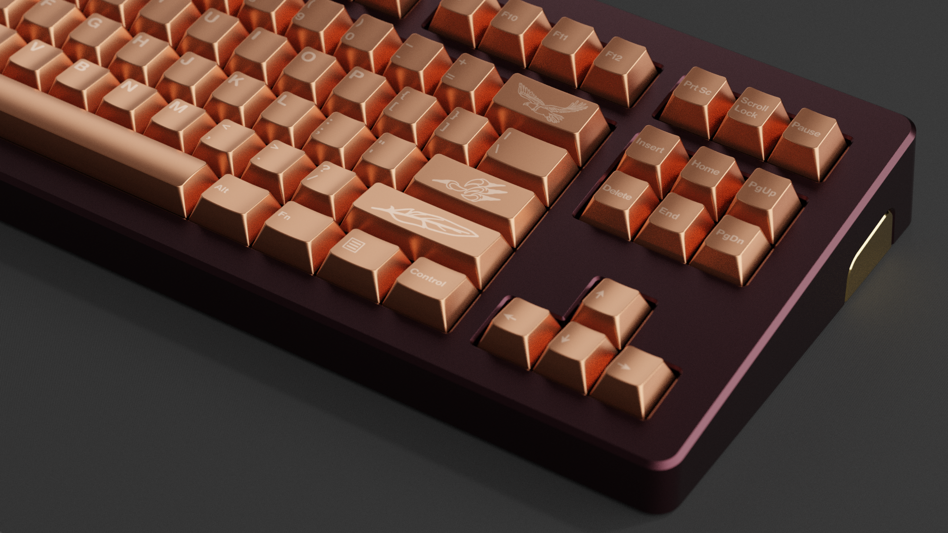 Influenced by the awe-inspiring copper eagle statue—a symbol renowned for its embodiment of strength, freedom, and vision. I admire the glossy surface of copper and would love to create a set of keycaps with a copper texture for the Copper Eagle.