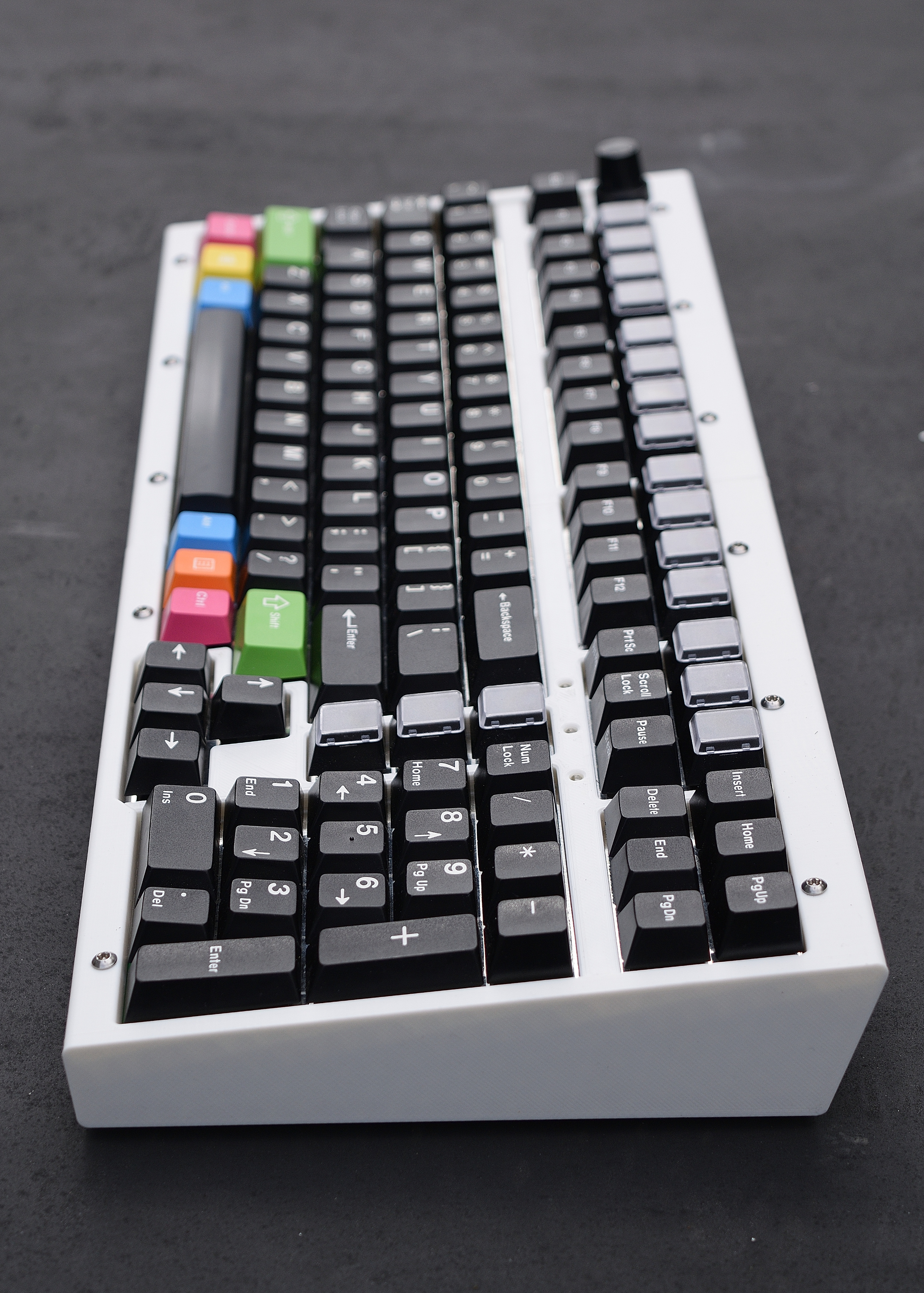 May 29, 2020 - Moved F-keys over rightward slightly. Bottom weight is now aluminum instead of brass as the keyboard is pretty heavy to begin with.