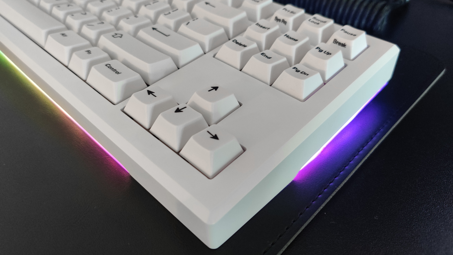The prototype unit has e-white finish on both keyboard and wrist rest.