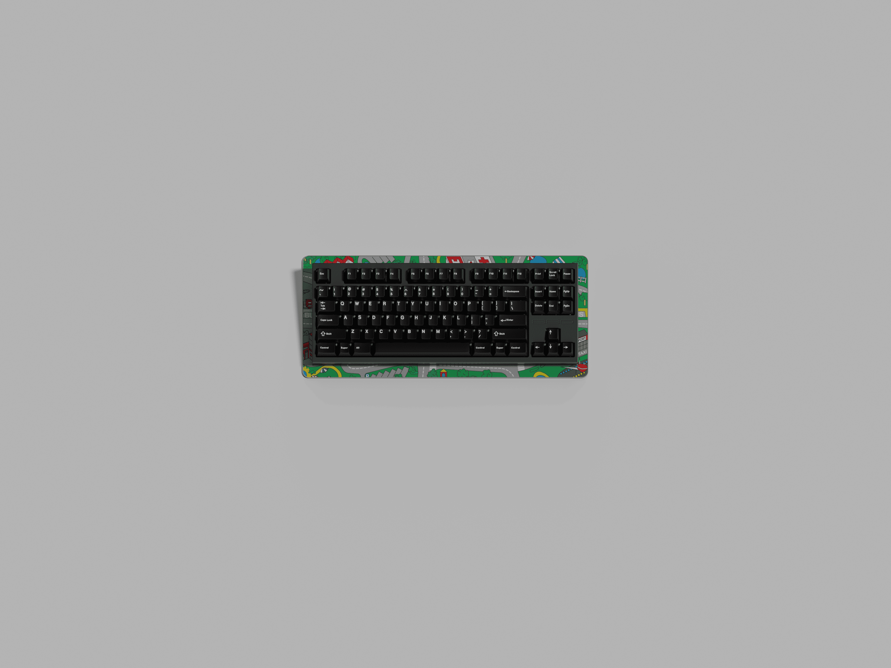 Next up we have a TKL mat. Same colors as before but a different size. This one is 385 x 171mm. Chosen to cover most TKLs on the market with a little extra peaking out