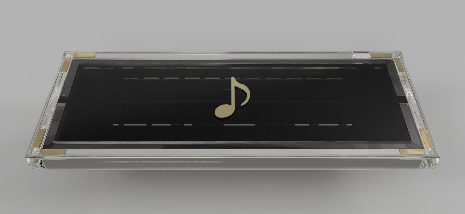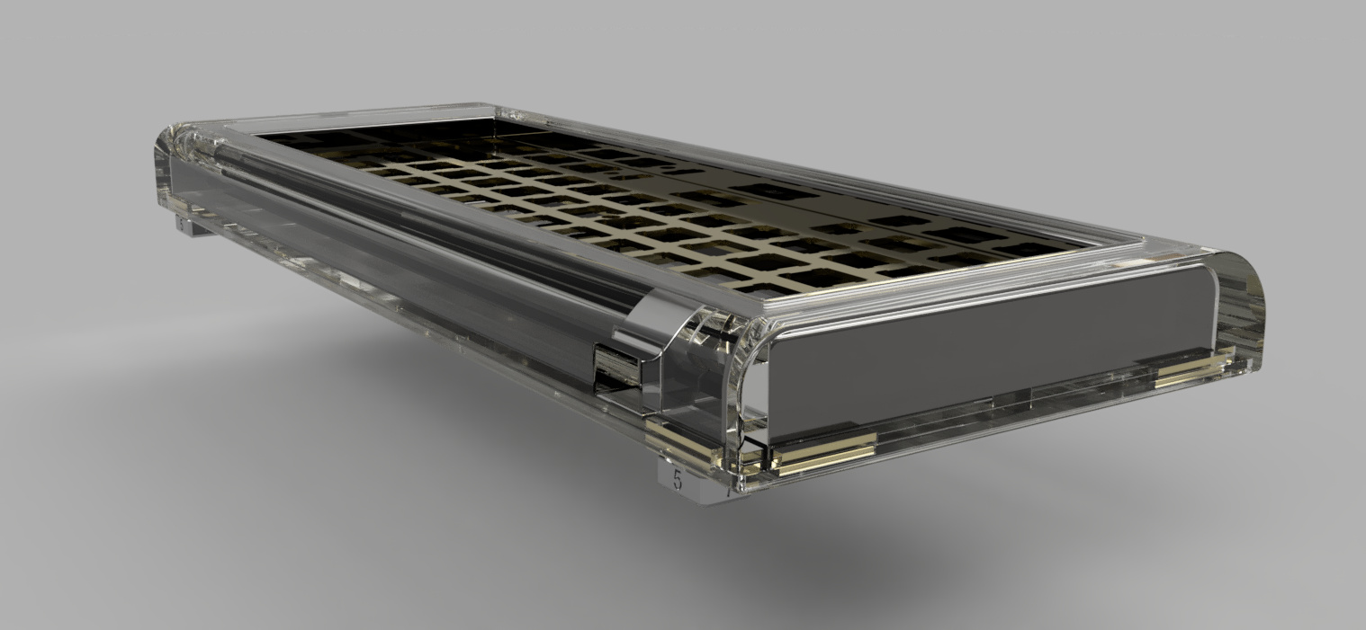 I created this keyboard in an attempt to create a floating type design. I also personally like the combination of acrylic and polished metals.