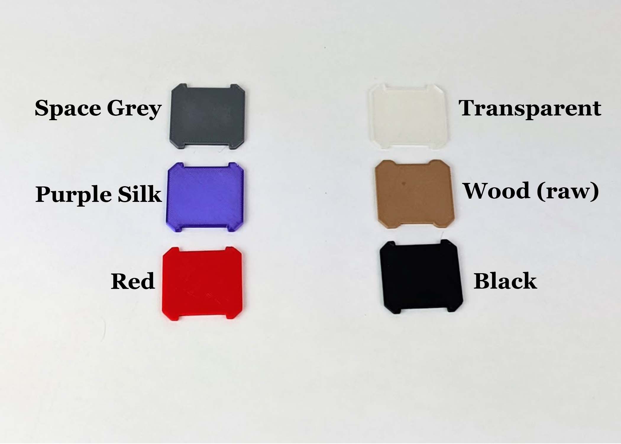 The Nice69 v2 will be be available in any combination of the following 6 filament color options: Space Grey, Purple Silk, Red, Transparent, Wood (raw), and Black