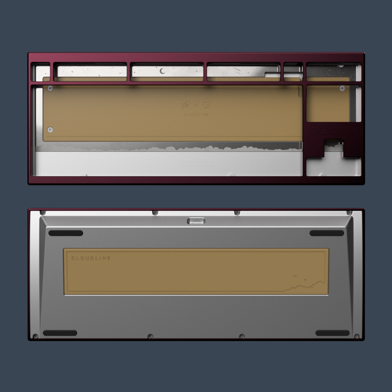 Almost everything about the Cloudline's physical design adheres closely to the overarching theme - from the side-profile structure to the illustrations, every tiny detail has been meticulously considered. The inspiration for this keyboard's unique side-profile comes from the 'silver lining' at the edge of a cloud, while the various engravings aim to represent symbols of optimism and freedom."