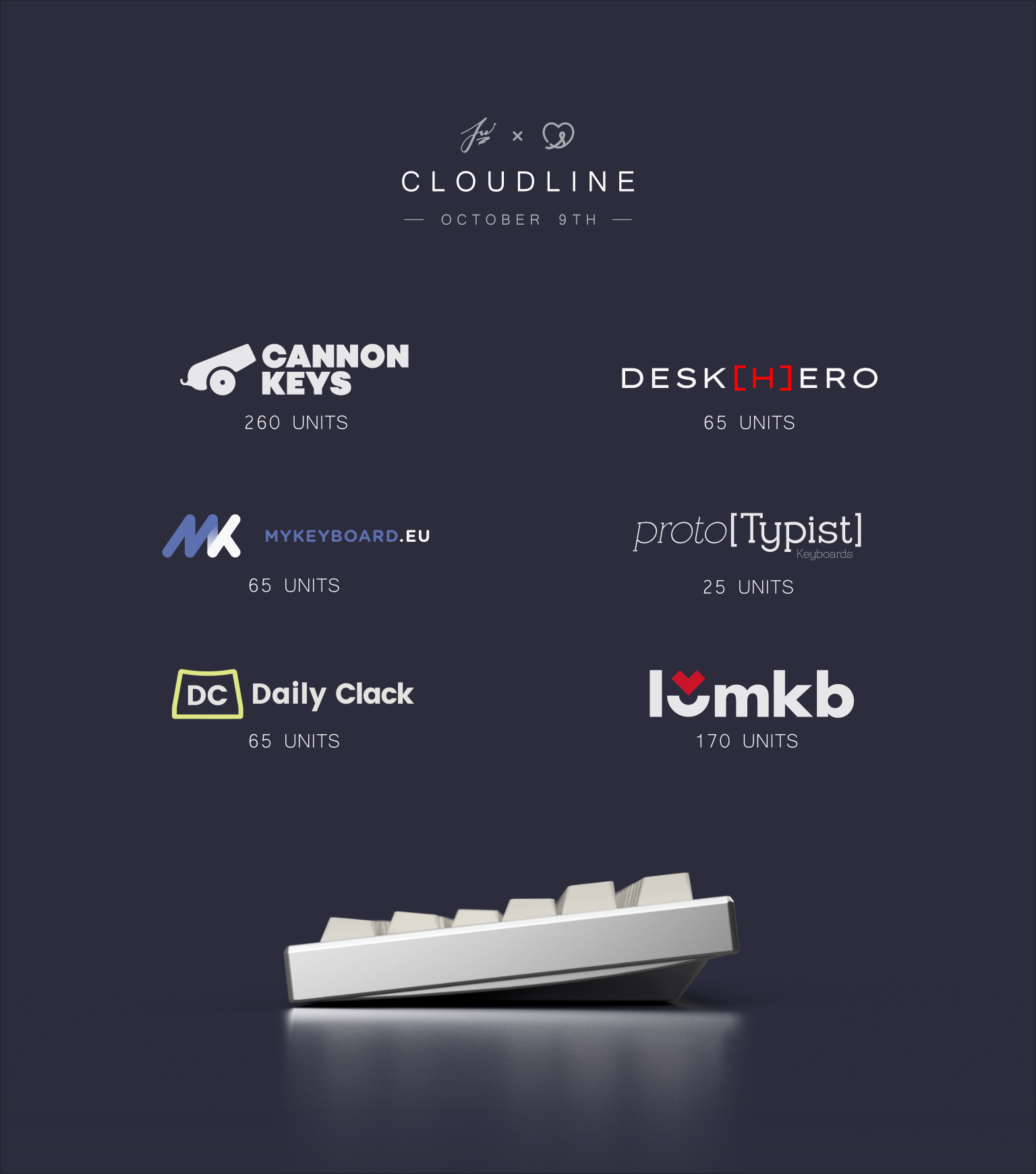 The time is finally here! The group buy sales for Cloudline TKL will be going live starting this Saturday, October 9th (see your vendor's details for more specific times). Sales will run for one week until October 16th, or until limits are hit.