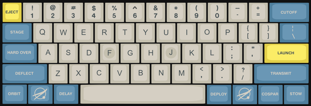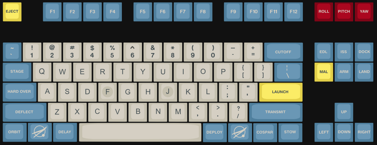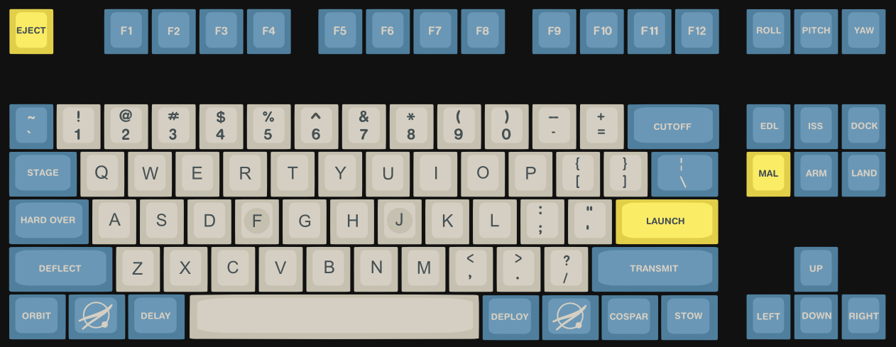 Since I got into mechs, I always wanted to design a space themed keyset. I was looking at some NASA archives I've got in my computer and found some incredible pictures, from the Apollo 13 and Apollo 15 Missions, from the Apollo Program and inspiration just came.- Cospar is SA (2-1-2-3-4-3) ABS doubleshot, semi-matte top and sides.