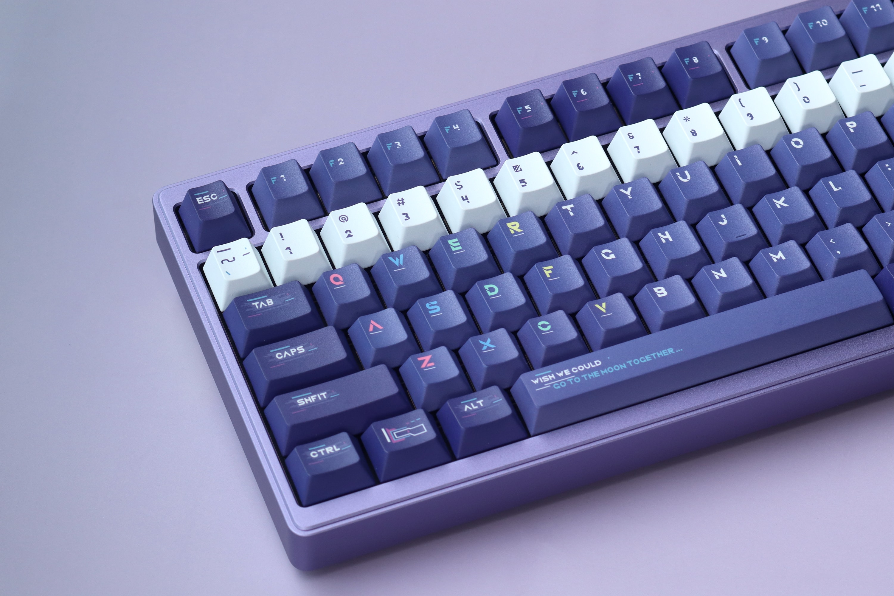 The biggest headache is when starting to design the color scheme of the keycaps. The dark blue, purple and white color matching of Lucy's clothes and the red embellishment are very memorable,