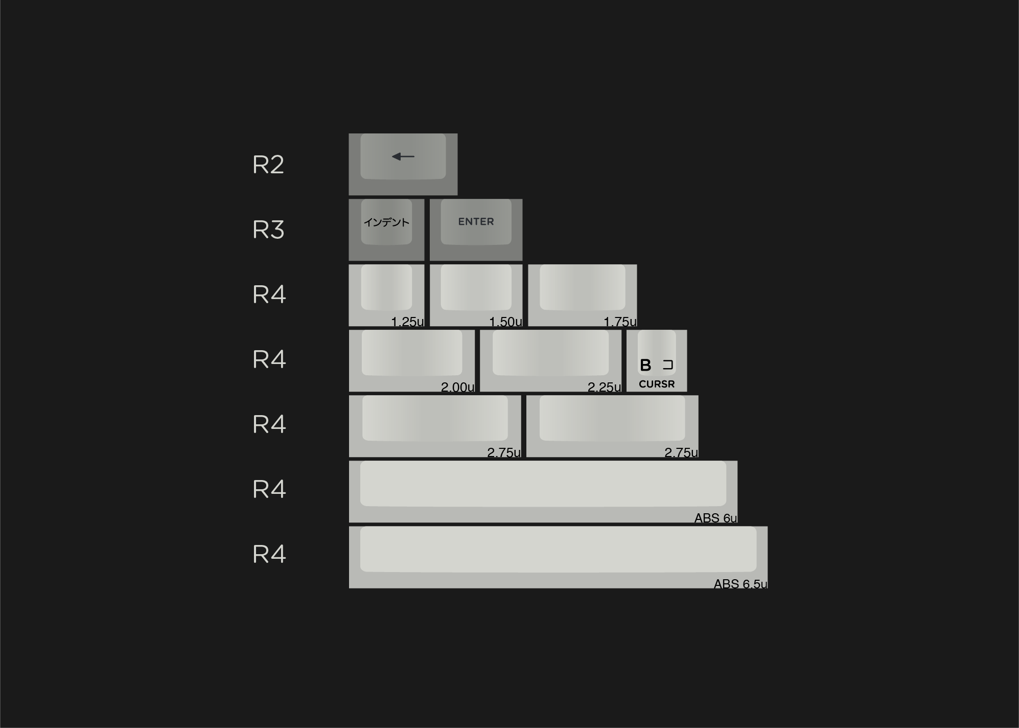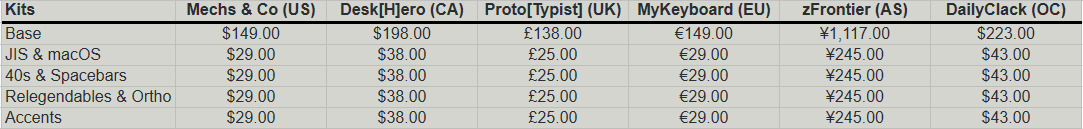 KitsBasePlease note that the longer spacebars will be made in ABS due to warping. Front legends will be pad printed.