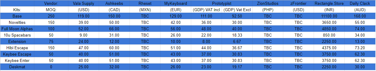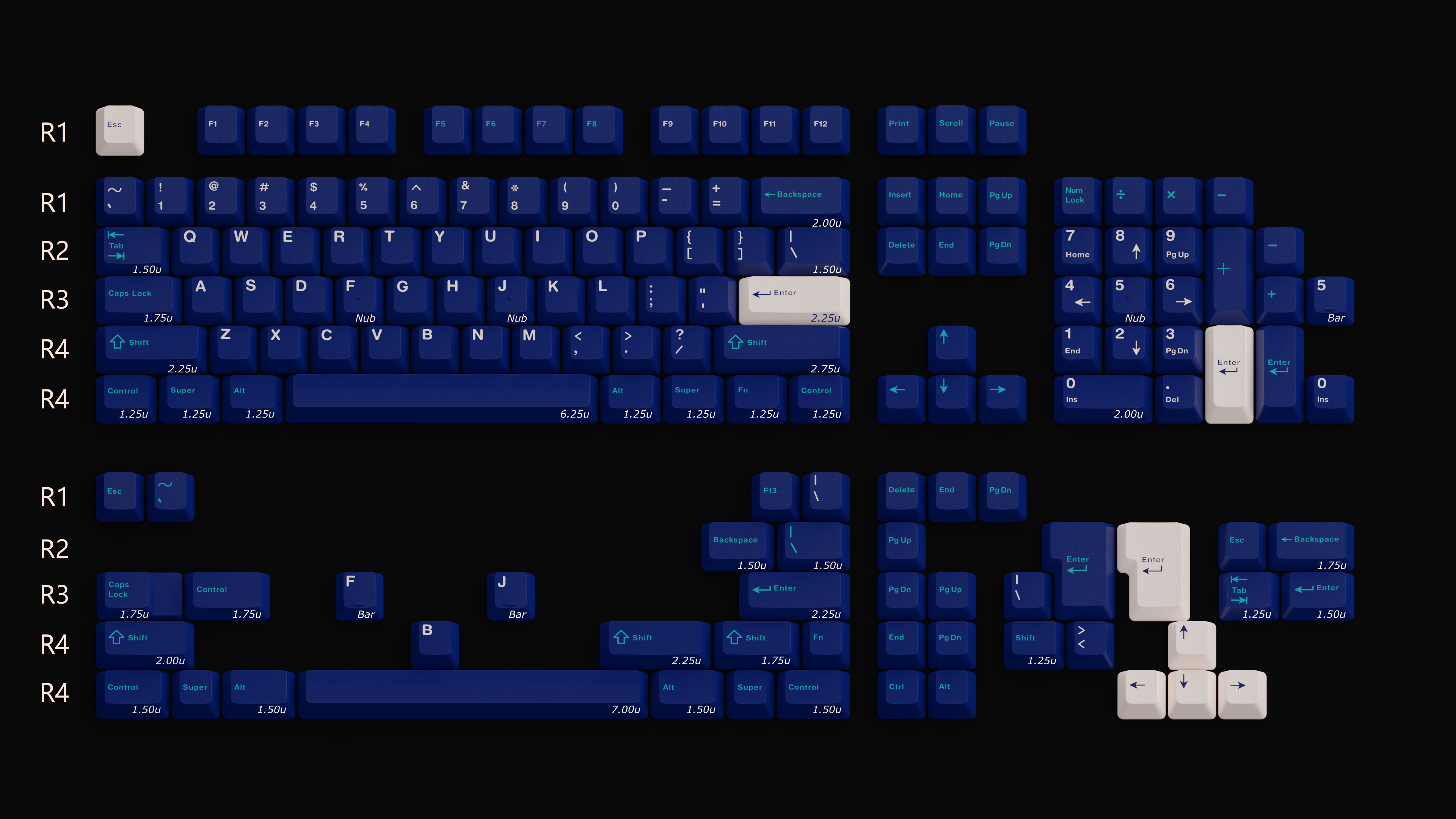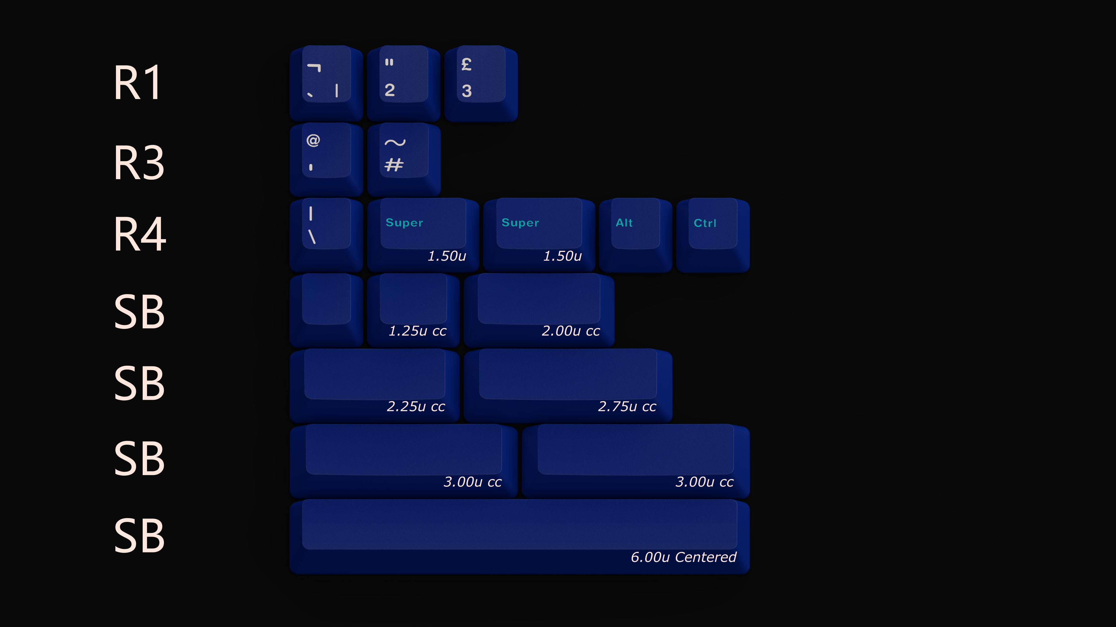 Note: All bars less than 6u are concave blanks. 6u spacebar does not have standard mounting points.