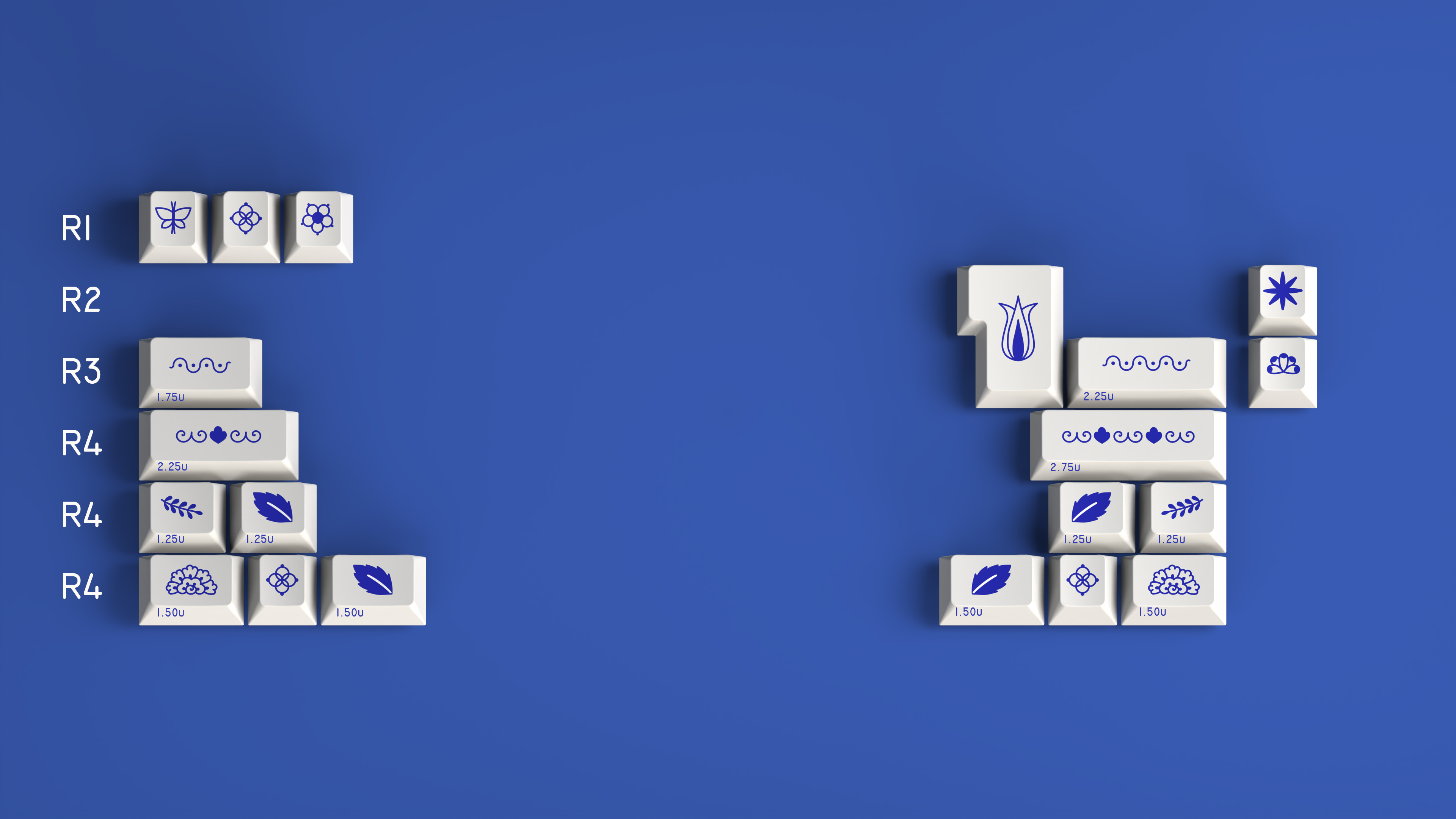 Inspired by ceramic art famous in the Dutch city of Delft. The colours, novelties and sublegends are based on real hand-painted ceramic artwork, with over 25 unique sublegends designed to make your keyboard stand out.