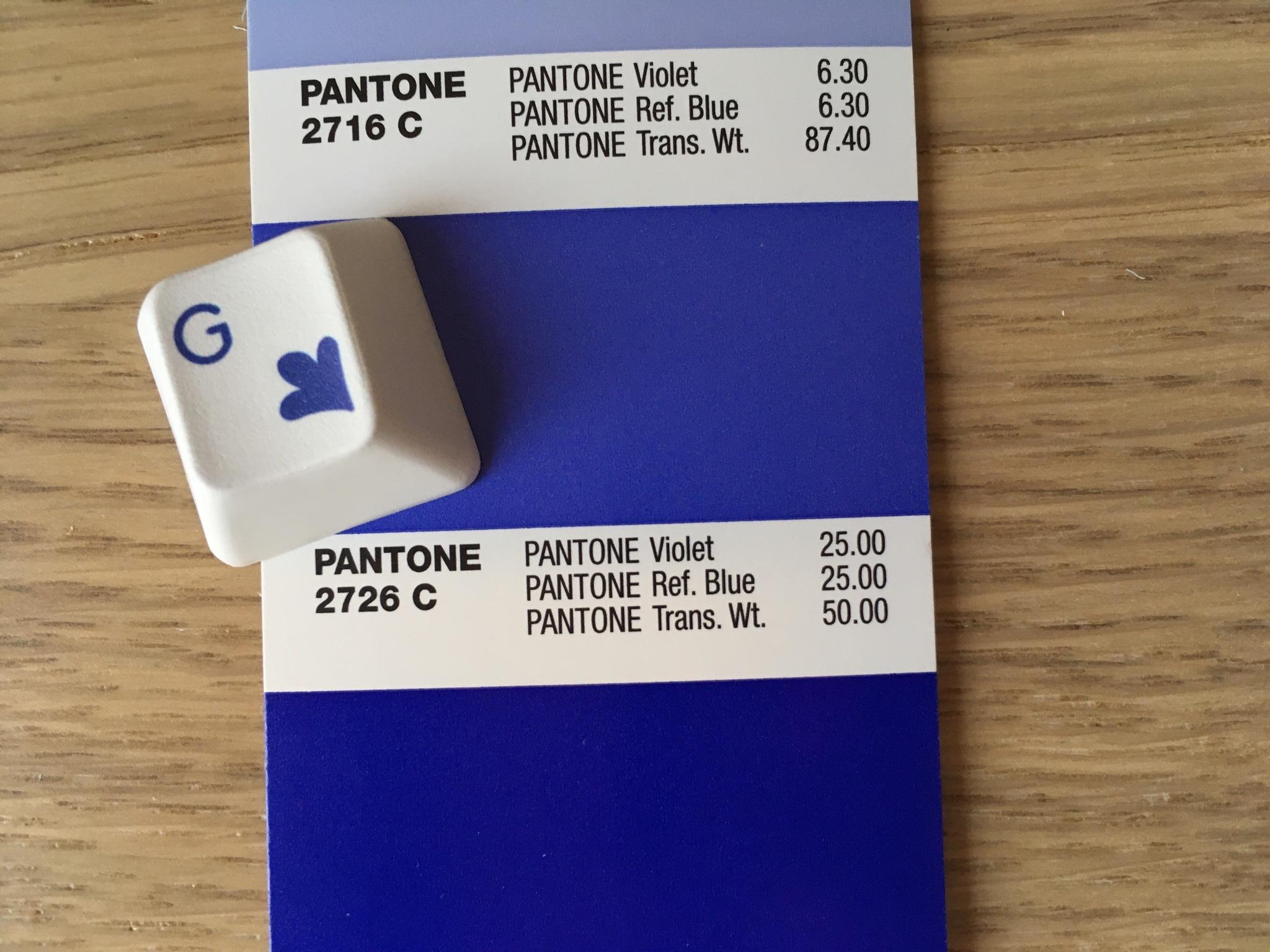 The base kit and dye-sub PBT are using SP's default PBT colour WAN. The dye-sub legends in the sample above closely match Pantone 2726C. Based on responses from the IC form this will be the final blue.
