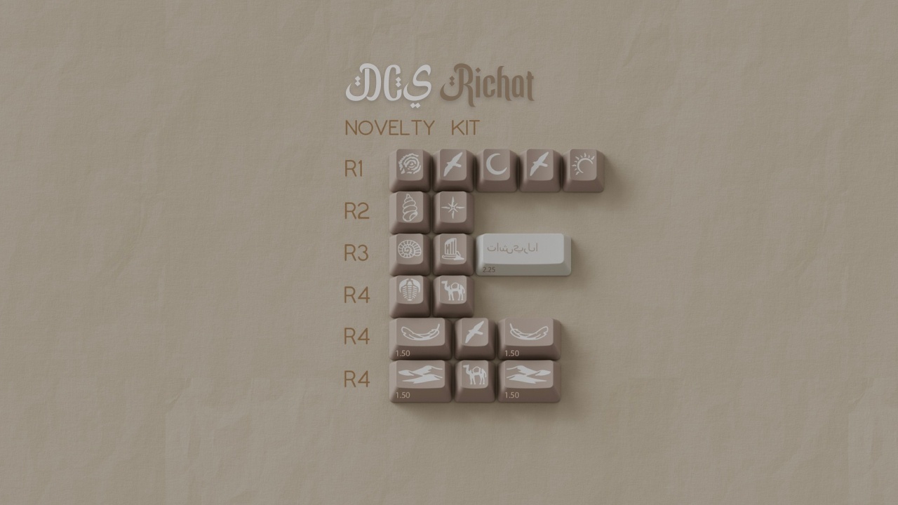 hi there! thanks for stopping by my first keycap set IC for DCS Richat! DCS Richat is inspired / themed after the Richat structure aka 'The Eye of The Sahara'. for a quick backstory- the Richat structure is an extremely unique geological feature located in Mauritania. there are a few theories as to how this structure came to be, most of them pointing to natural volcanic activity or erosion, but the most intriguing is that it could be the site of Atlantis. the name Richat is a shortened form of the arabic name Guelb er Richât meaning Heart / dome of feathers.
