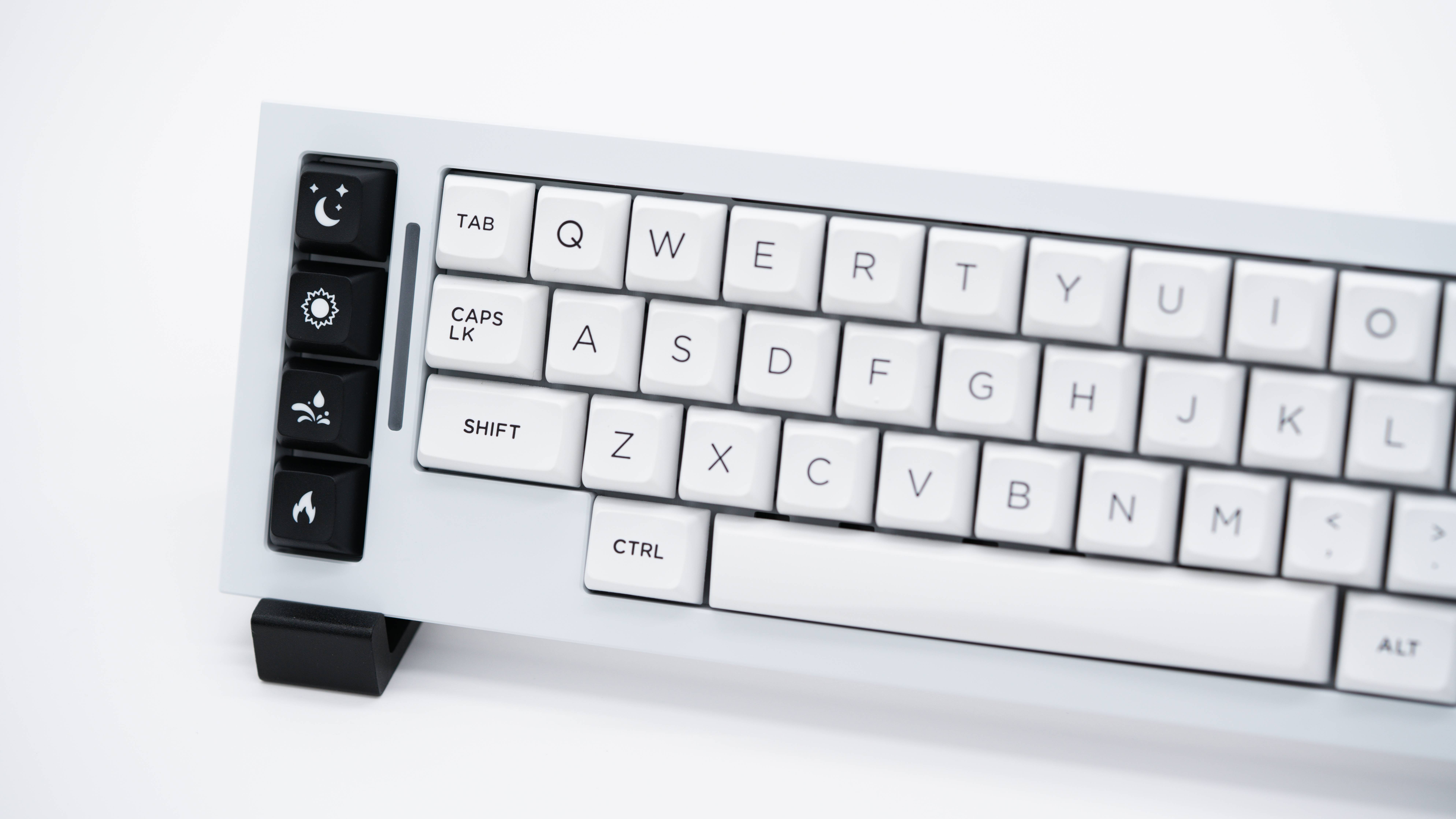 The case design involves some of my favorite design elements in modern keyboards - sharp edges and a two-tone aesthetic. I think the ability to mix and match colors unlocks a lot of potential for theming and photography and is visually appealing, but also optional for those who want a more minimal color palette.
