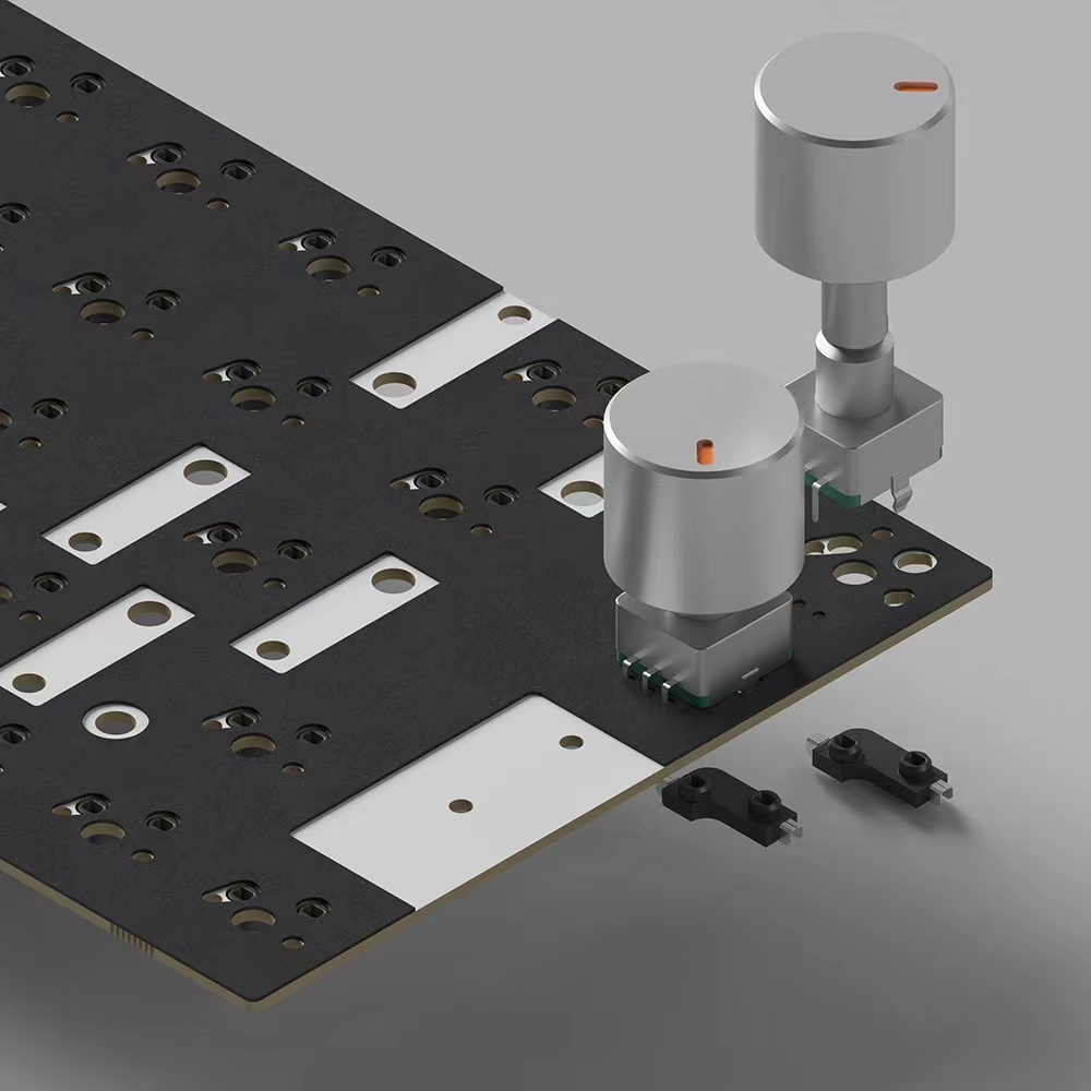 The two 1u on the far right can be desoldered and the ec11 knob can be welded after the hot-swap axle seat removed