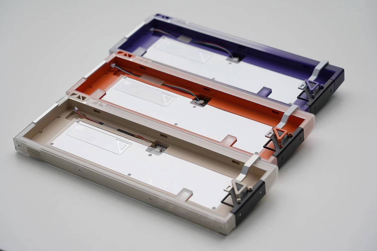 01 Silver anodized(E-coating green triangle bracket + white transparent PC) 02 Violet E-coating(anodized purple triangle bracket + gradual transparent PC)