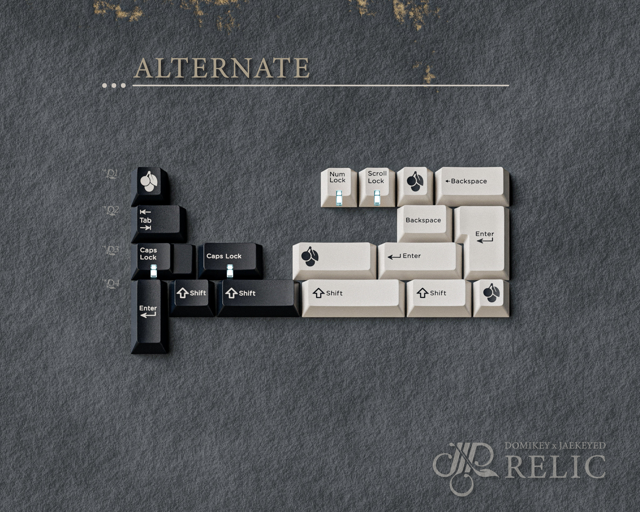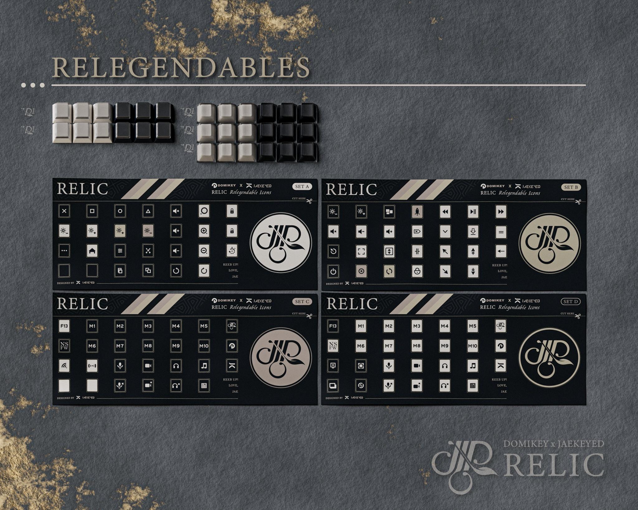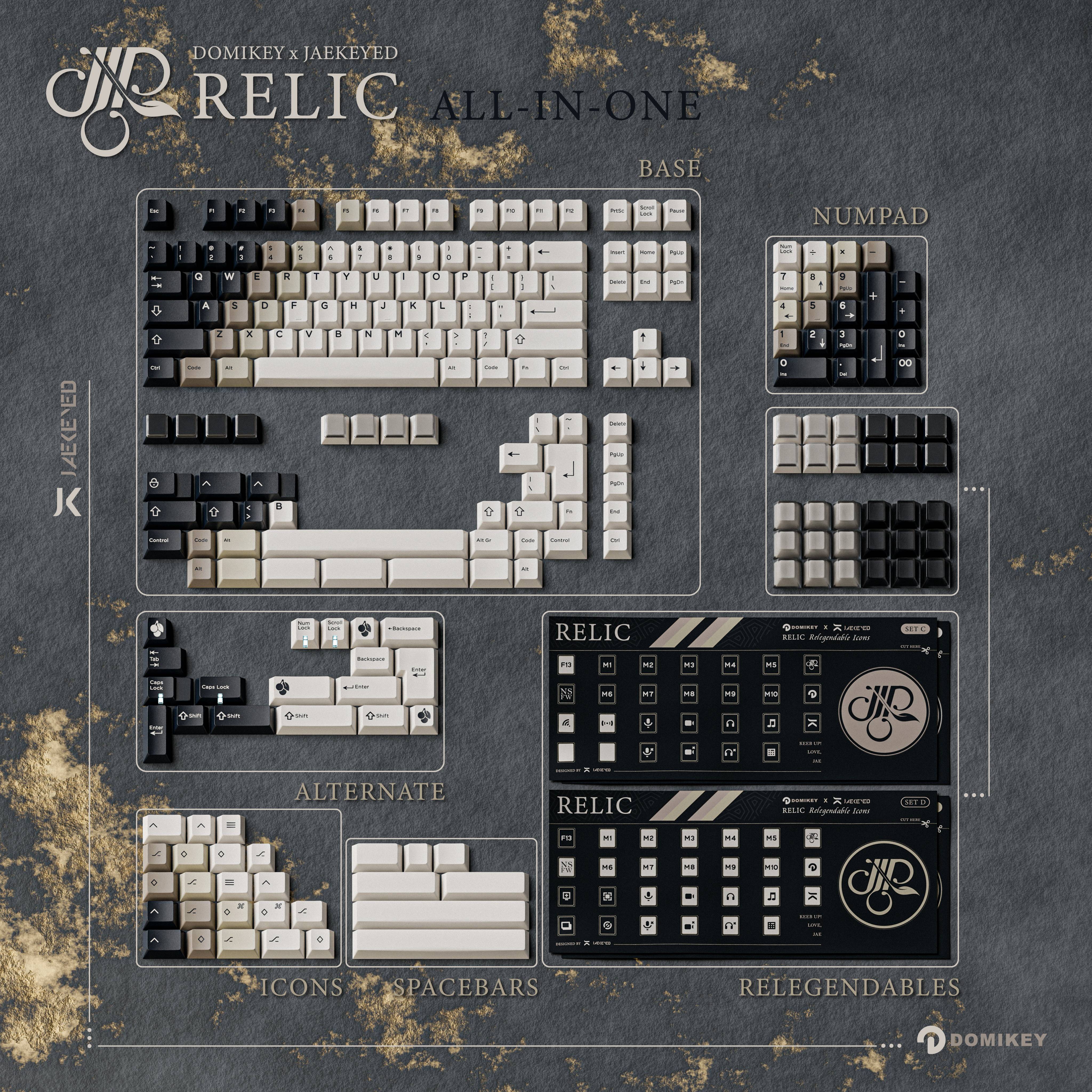 KITSAll-in-one ($177)Domikey offers 'all-in-one' kits for all their keycapsets, which is a combination of all the kits under a keycapset. Relic's kits are: