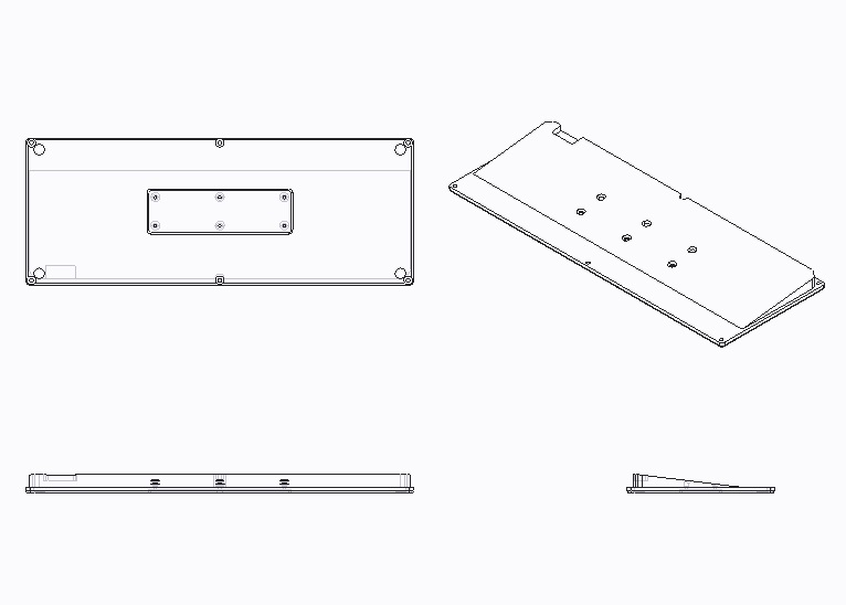 The board is designed to have medium sized bezels with a 30 degree chamfer on the top face to provide visual interest to the most visible face of the keyboard.