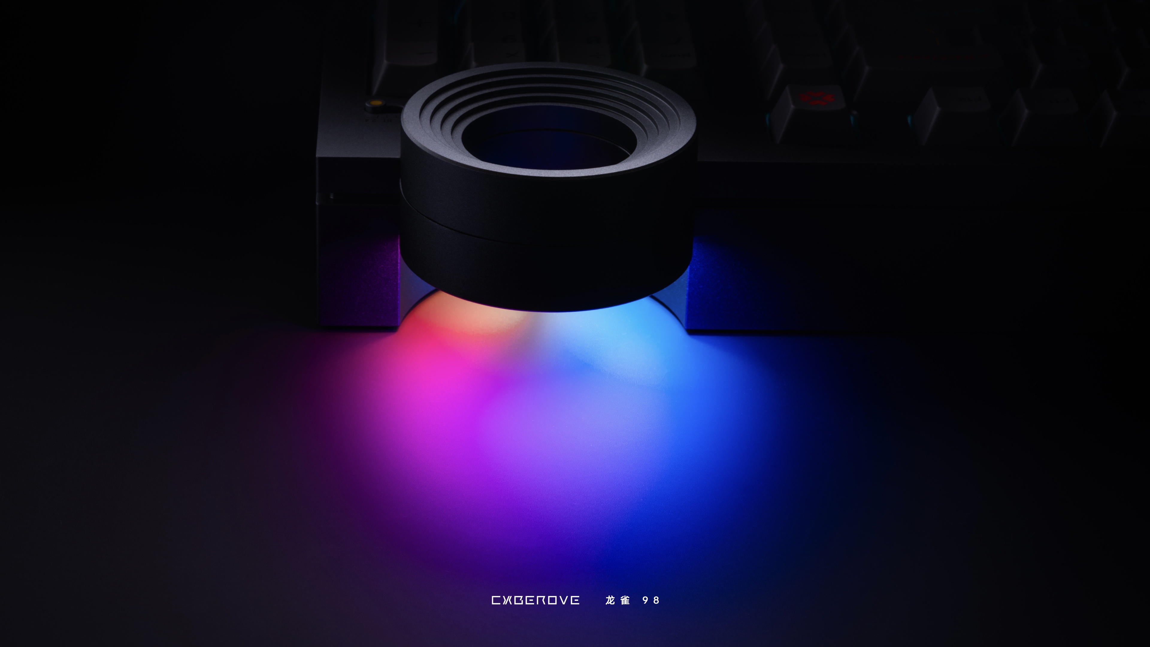 The LED array at the bottom not only serves as a knob for adjusting volume but also functions as a caps lock indicator, a 2.4G signal light, and even an ambient desk lamp.