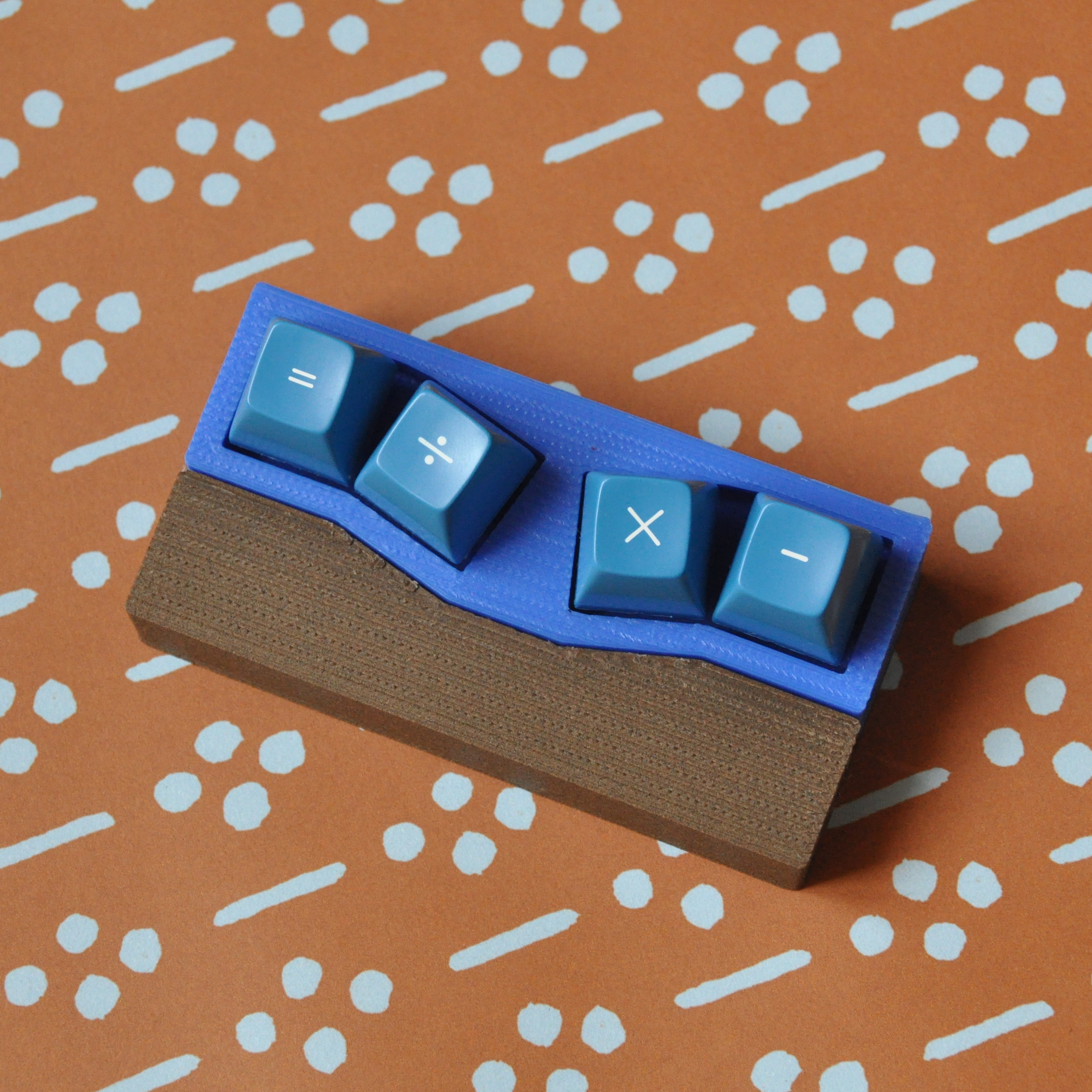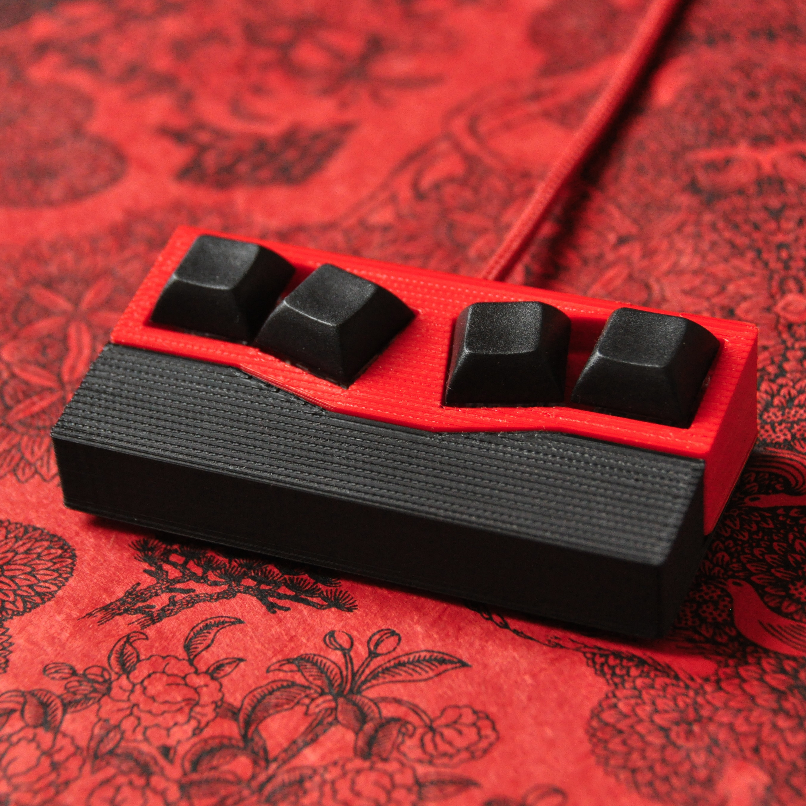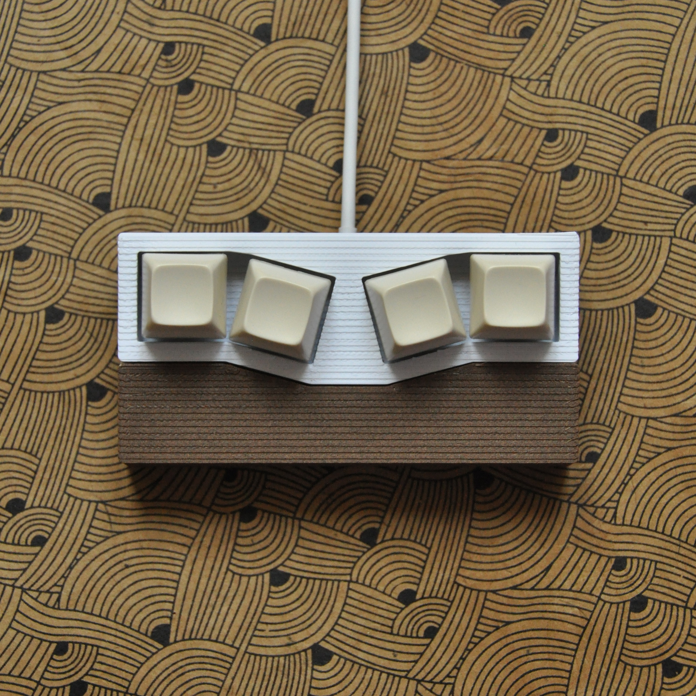 The design is a lighthearted homage to the many semi-angled ergonomic keyboard designs emerging in the community in recent times, such as the Lyn EM.7, TGR Alice, and Prime_e. I was really fascinated how the design decision of rotating the inner sections of keys made such a bold statement, and was curious to see what this gesture would look like in its absolute minimal case, so here it is: 4% ergo