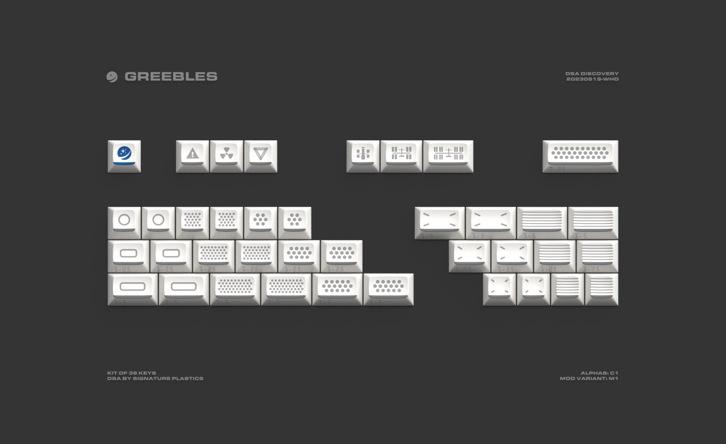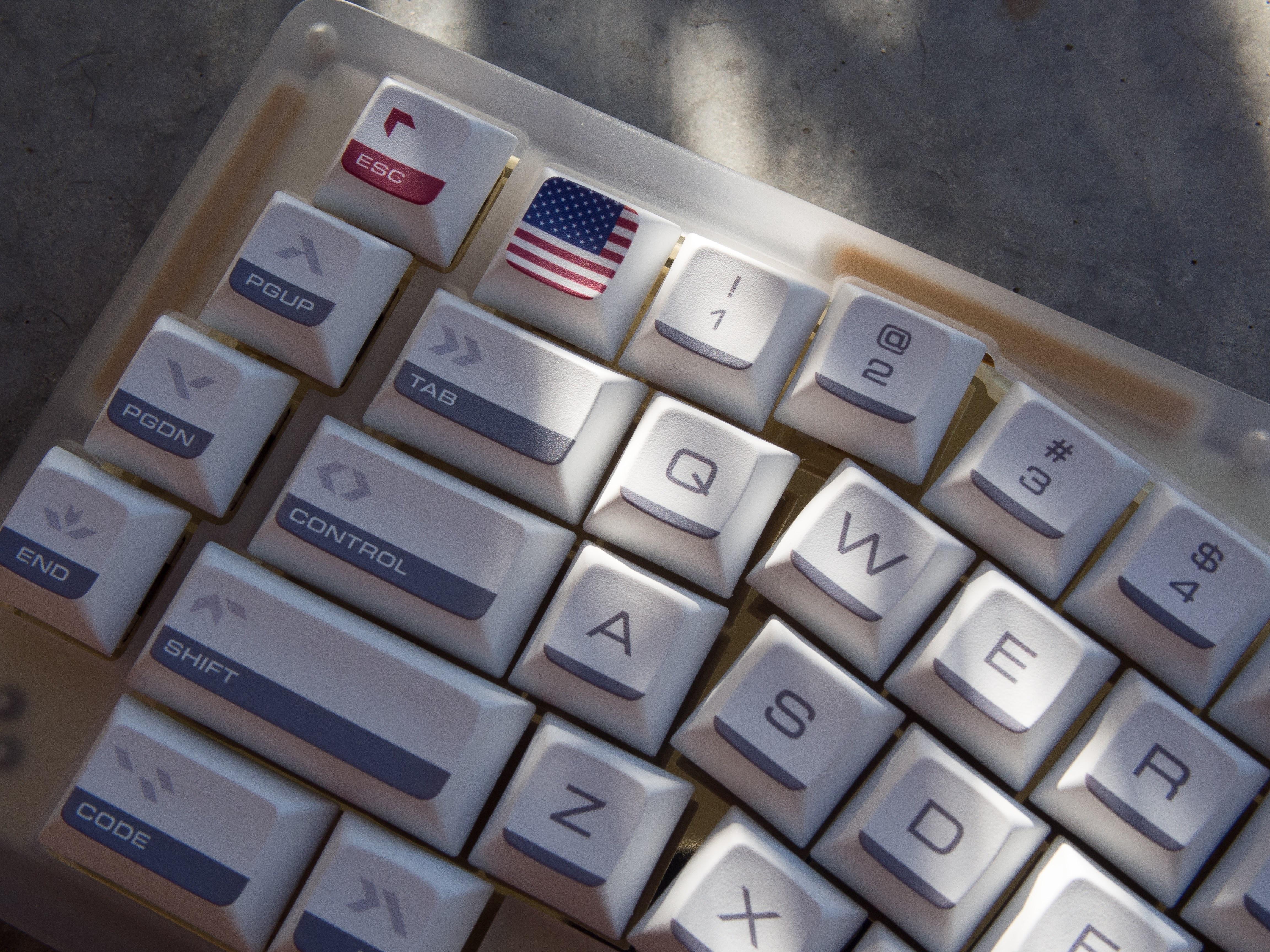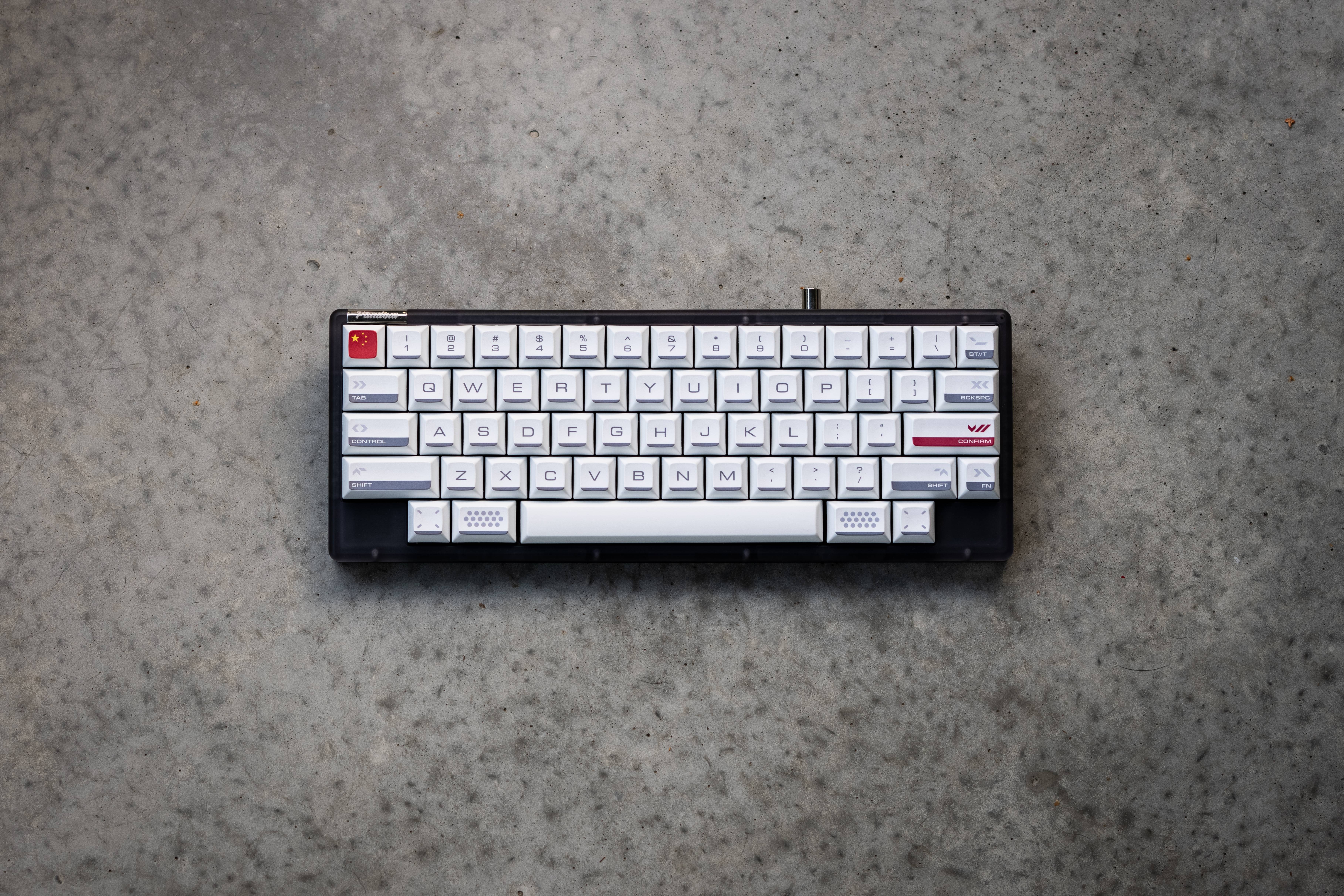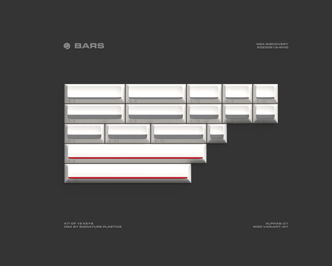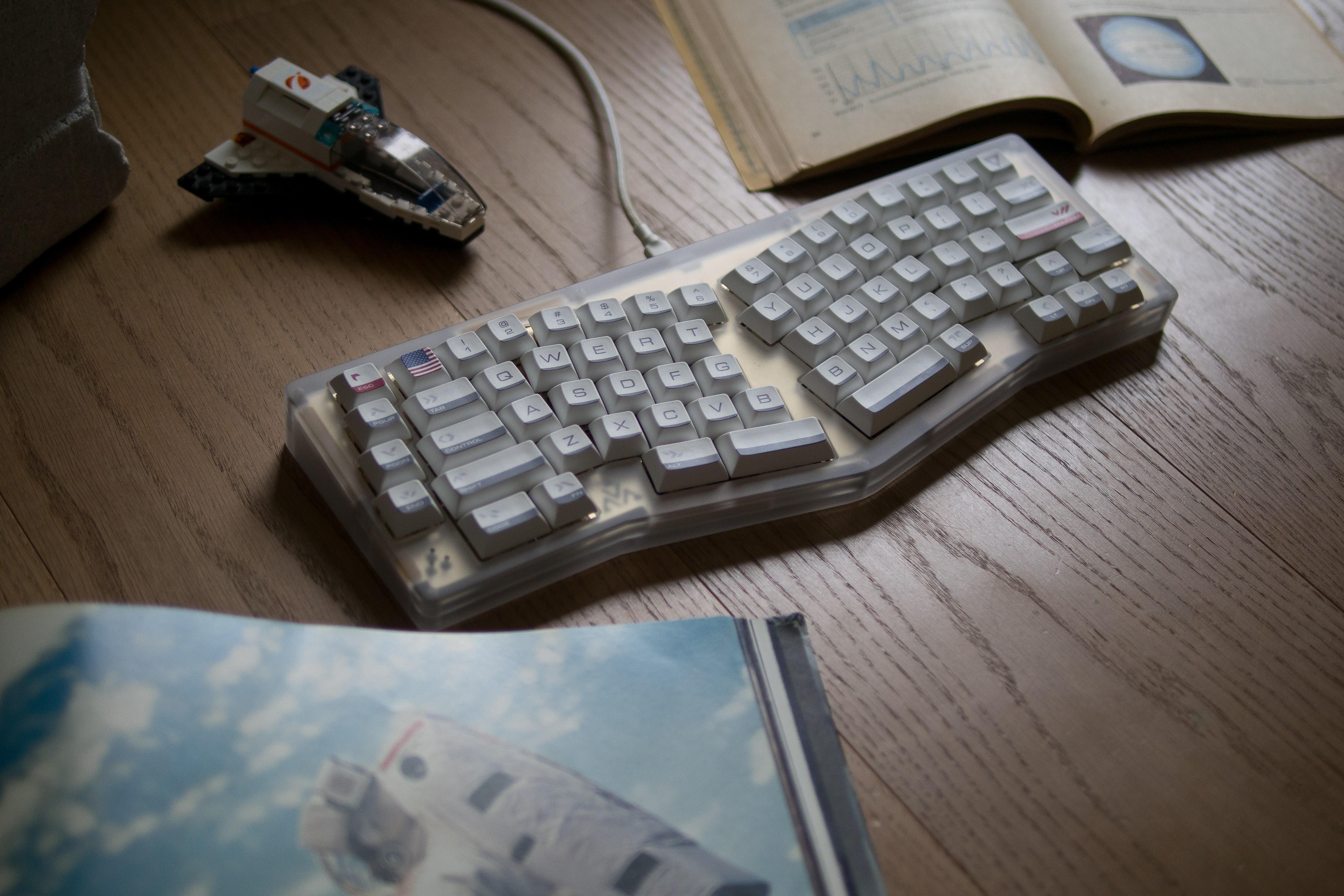 The barThe distinct grey-black bar at the bottom of each keycap pays tribute to the black insulation tiles of the Space Shuttle.