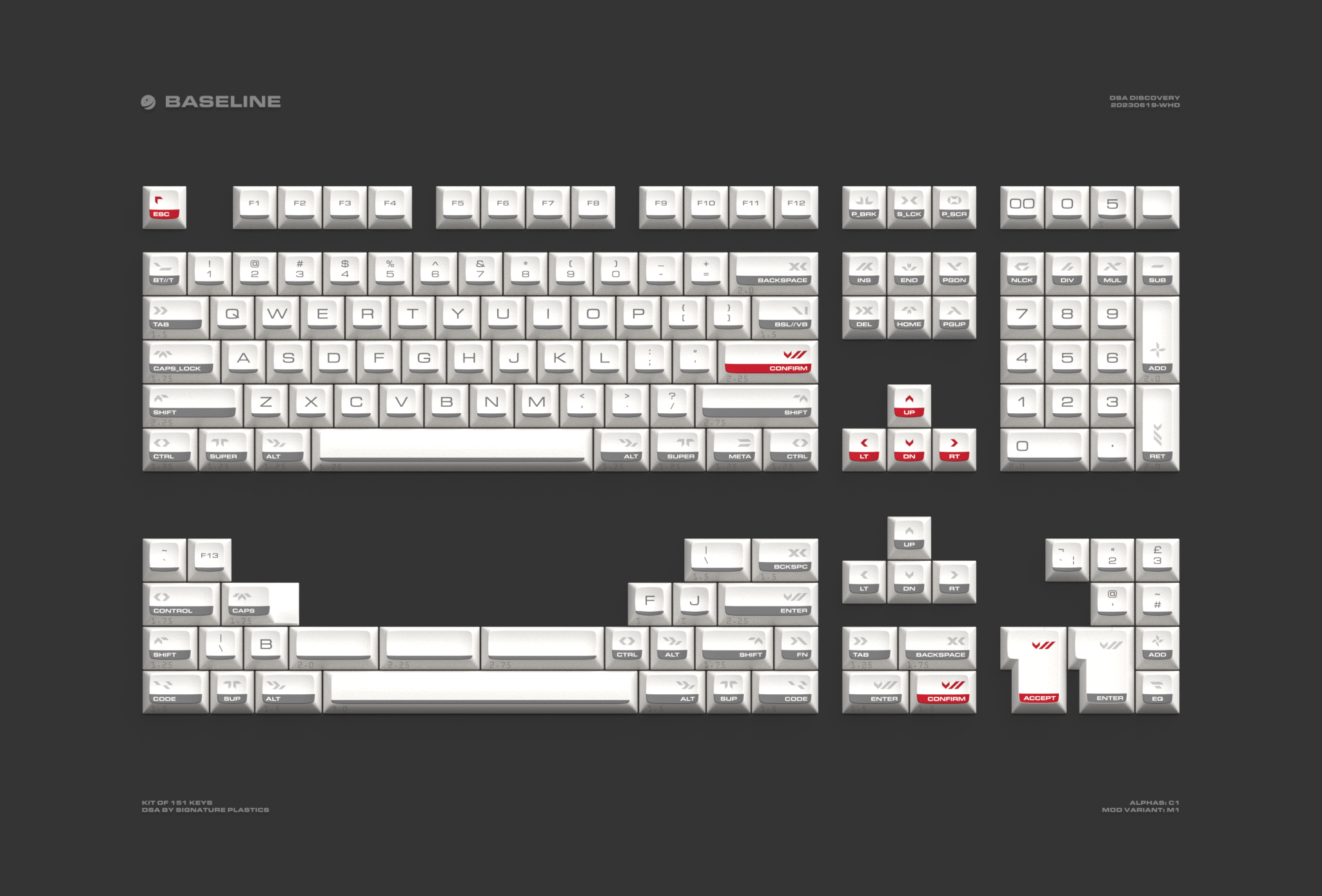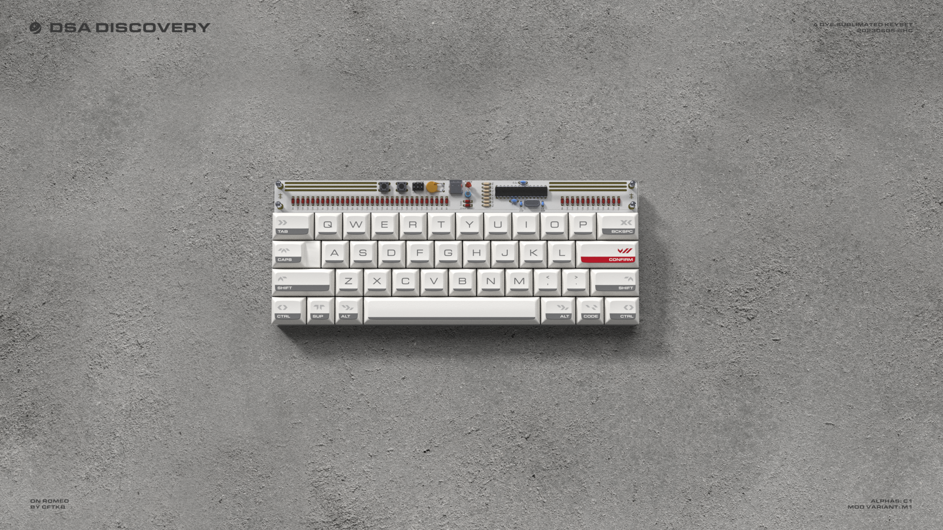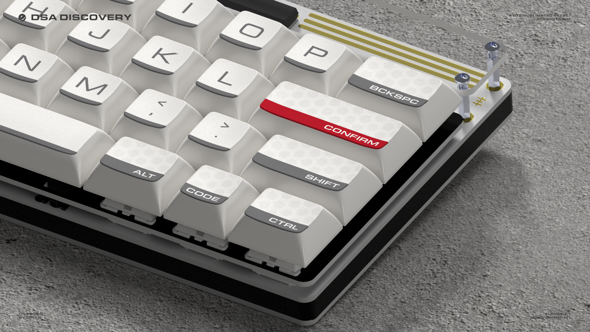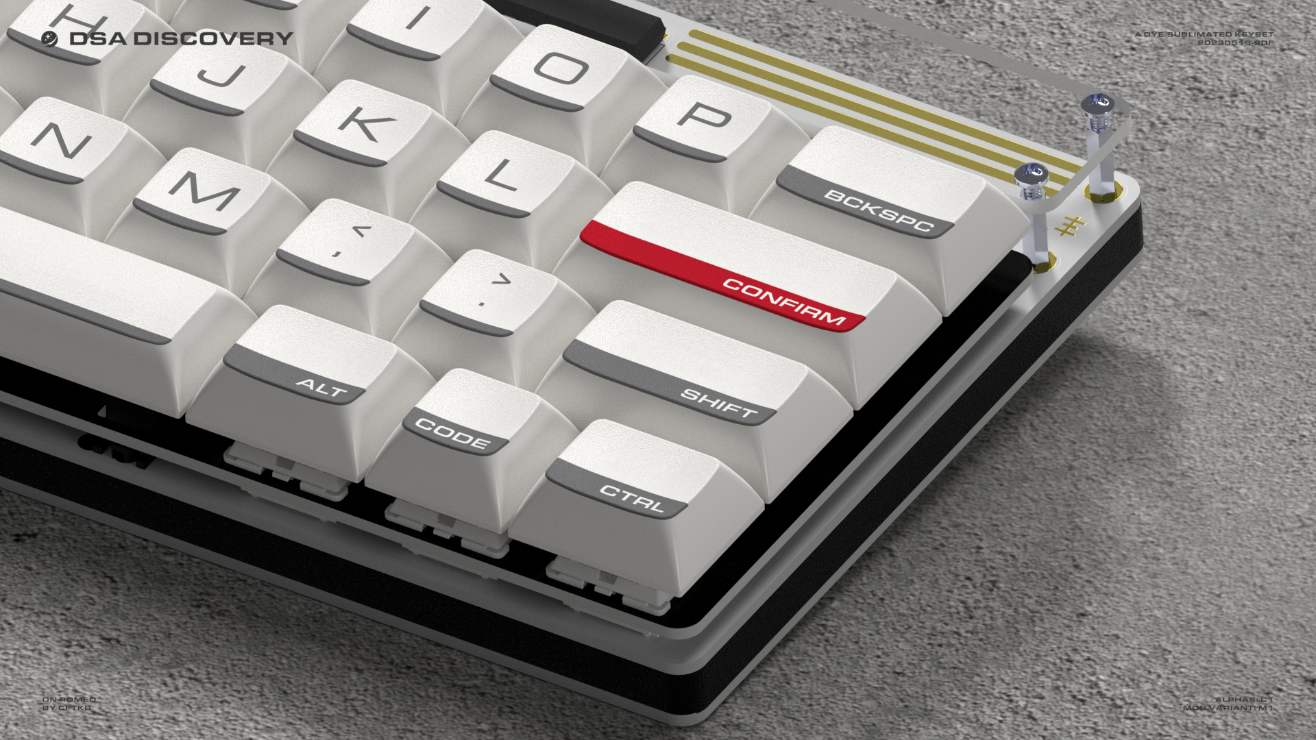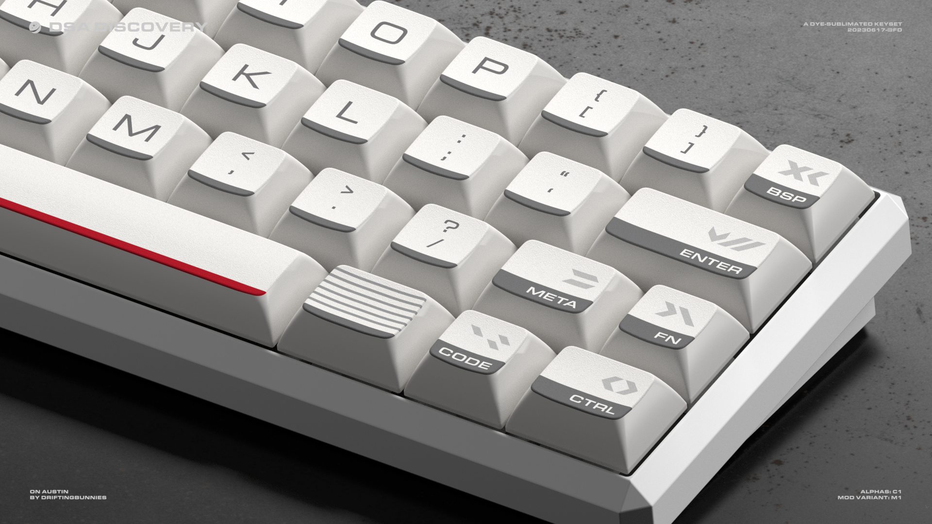The barThe distinct grey-black bar at the bottom of each keycap pays tribute to the black insulation tiles of the Space Shuttle.