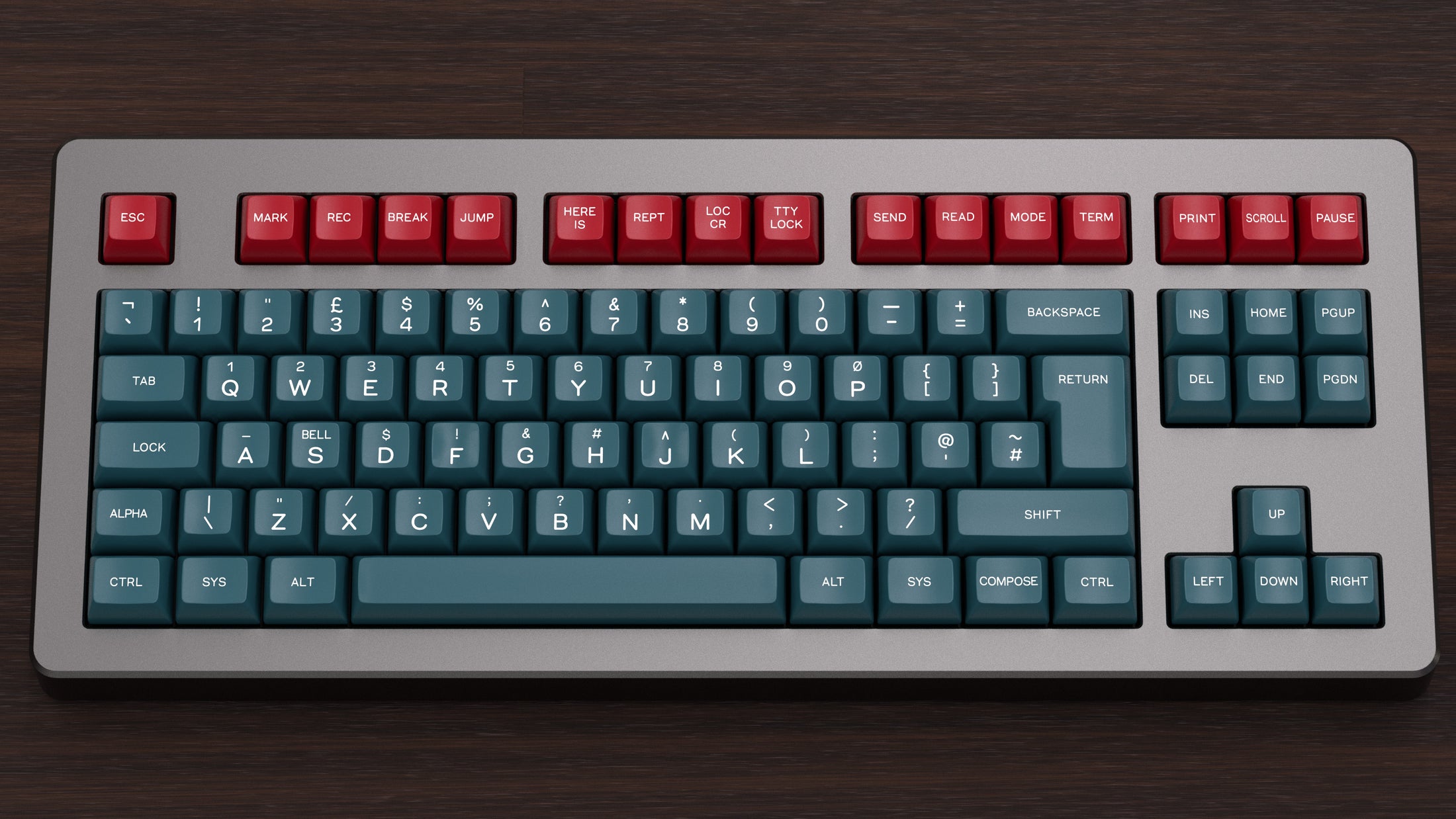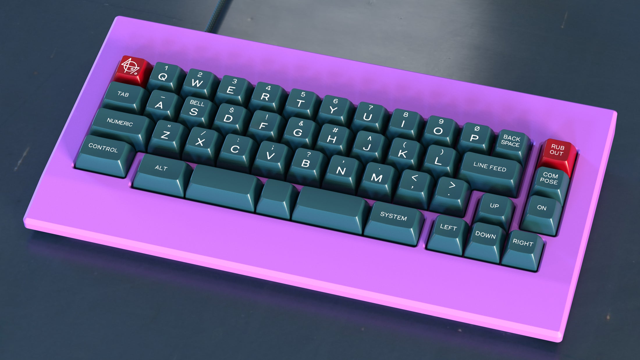 VendorsUS - SaberkeebsEU - Keeb.SupplyUK - ProtoTypistInspirationPiper set out first with the idea of the Teletype typewriters from the 50s including the KSR-28 and and the successor the KSR-33, the modifier legends were inspired by the text from those machines. Pulling inspiration from the colors of the machines and the legends, Teletype was born. KSRs were in themselves 40% type writers with their eccentric keytop layout and legends, so what better to serve as its modern reincarnation than a 40s monokit to fit any sized 40% or larger!