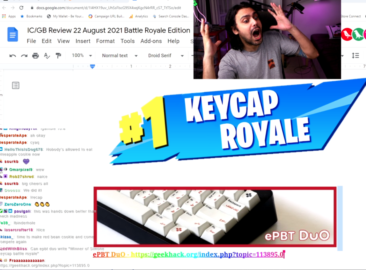ePBT DuO Prototype Album HereDuO was the winner of simon's first Battle Royale, Keycap Edition! What a fun stream that was, thank you all so much!