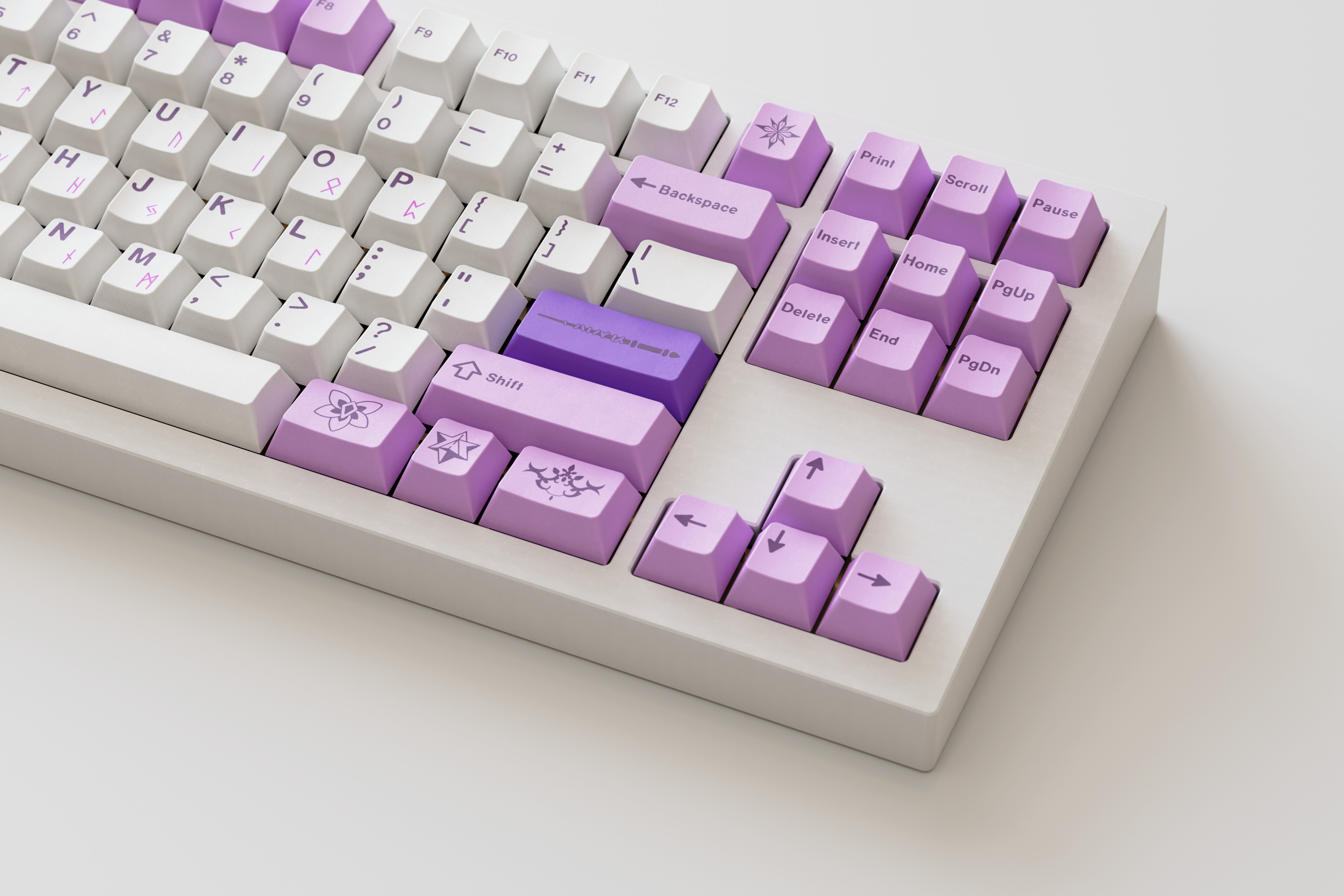 ePBT Skadi is a keycap set inspired by the character Scáthach-Skadi from TYPE-MOON's Fate media franchise, who is based on the Norse winter goddess, Skaði.