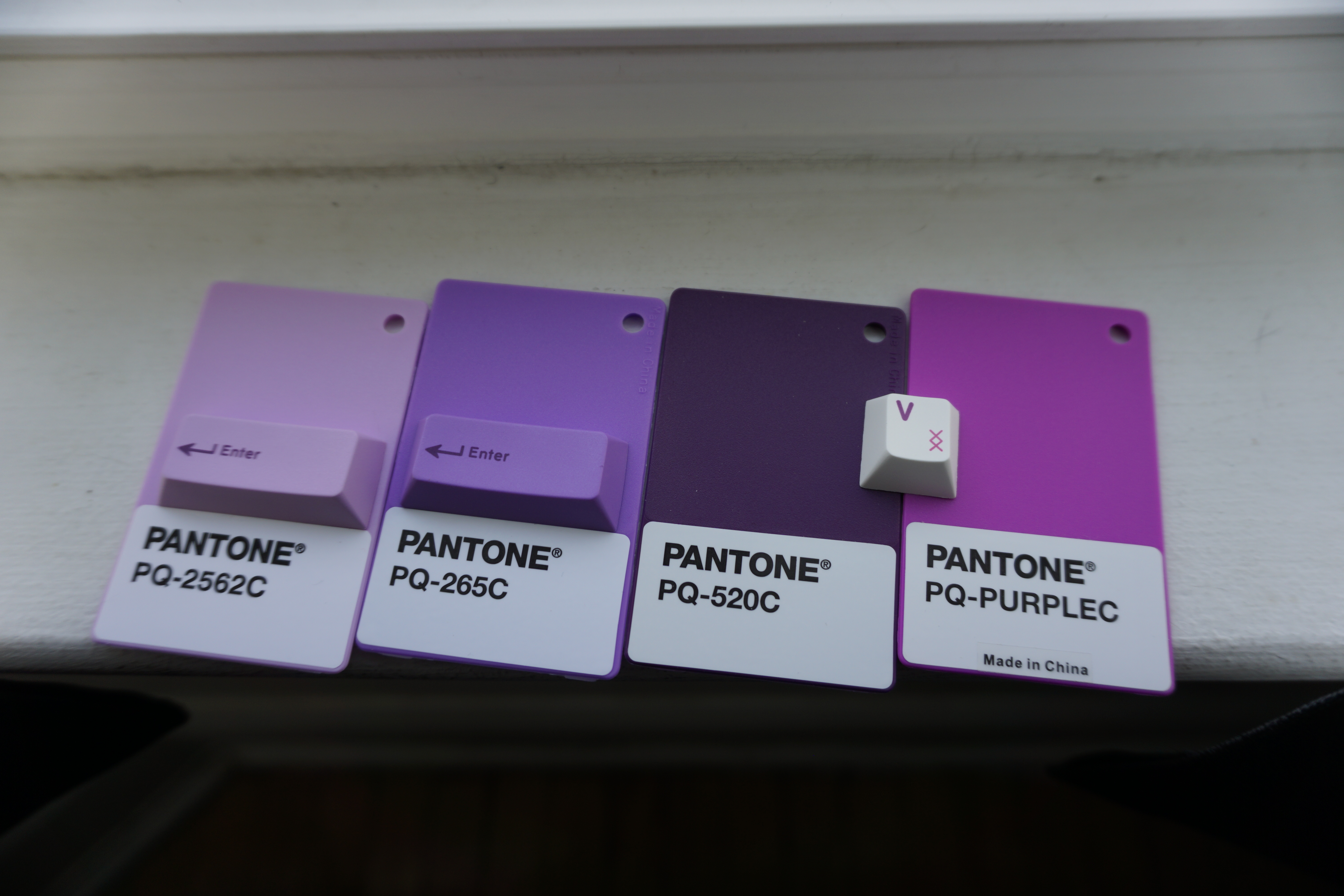 Colors are Pantone, physical chips have been sent to get color matched by ePBT. The white is GMK's WS2. Photo was taken in the shade.