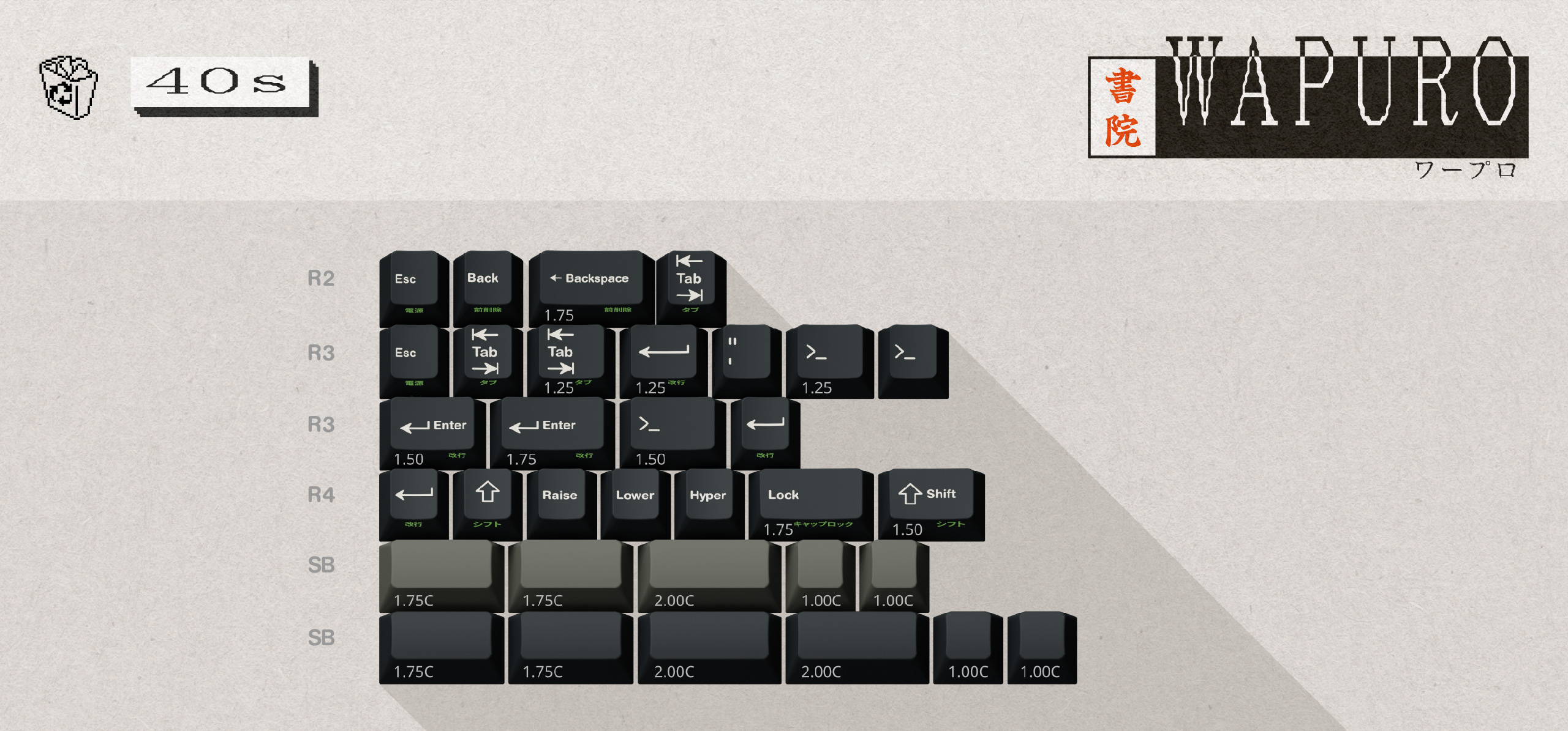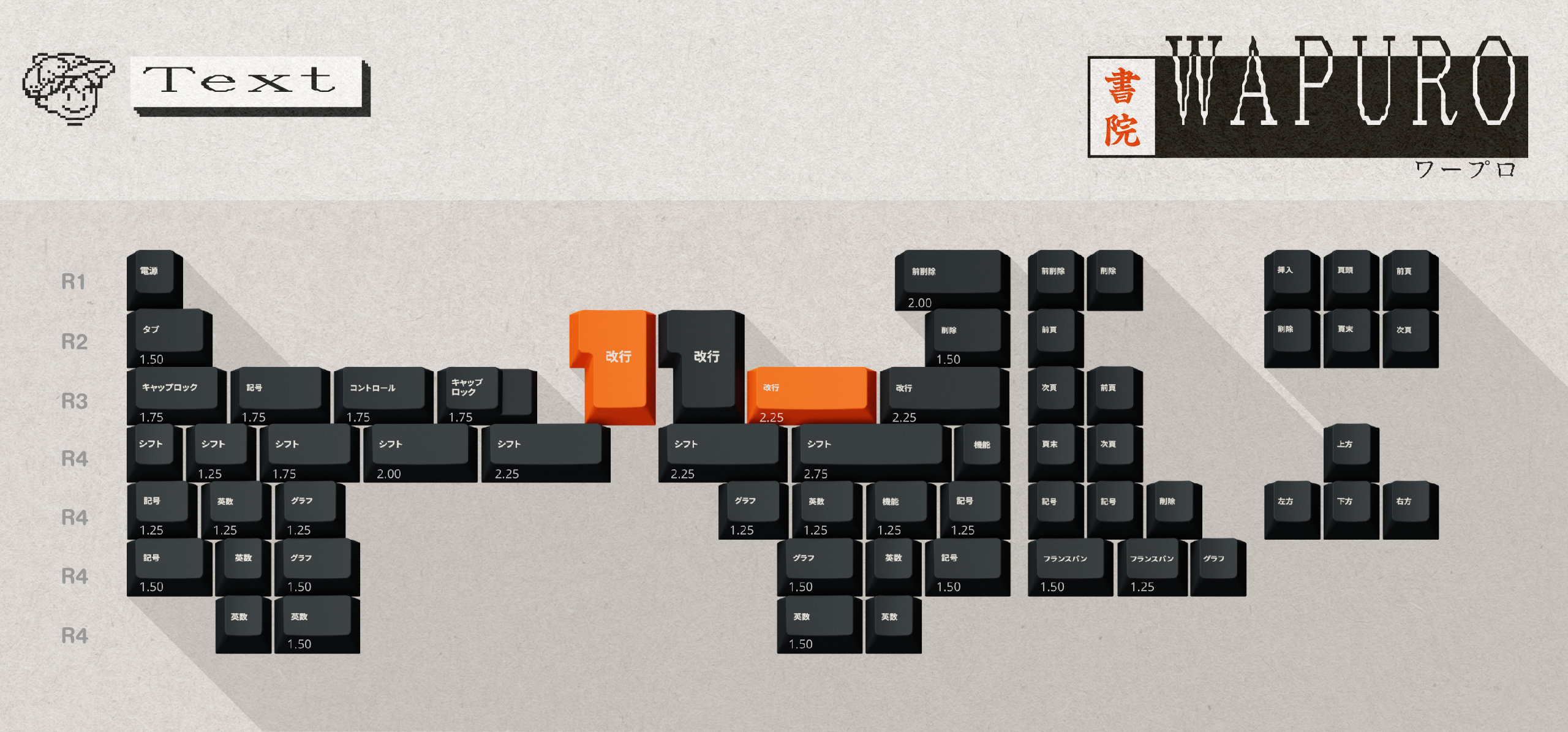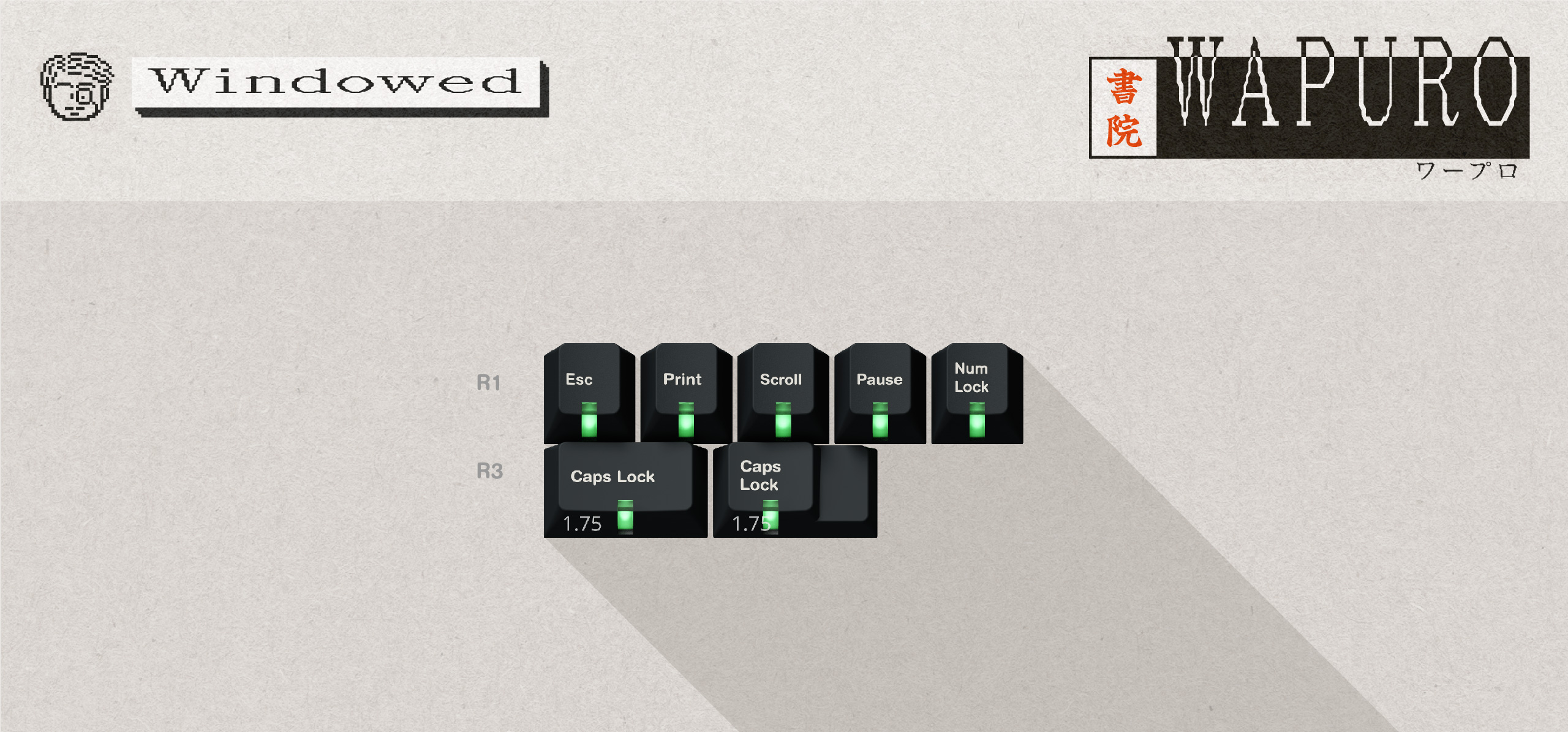 This keyset is an homage to the line of word processors from Sharp particularly. While they invented the first prototype in 1977, it took a few years for the machines to become reasonably sized and affordable. The logo font as well as visual elements in this IC are directly tied to what could be displayed on a word processor from the 80s, such as the Sharp WD-A330 or the Sony PJ-100 that this keyset is inspired from.