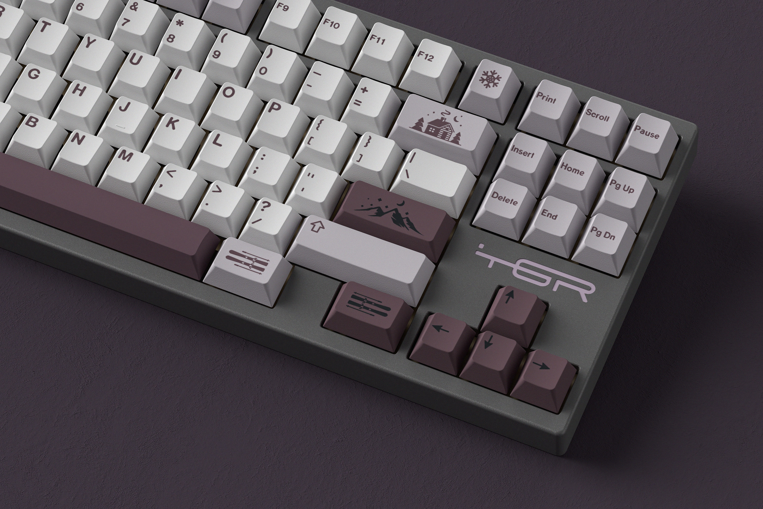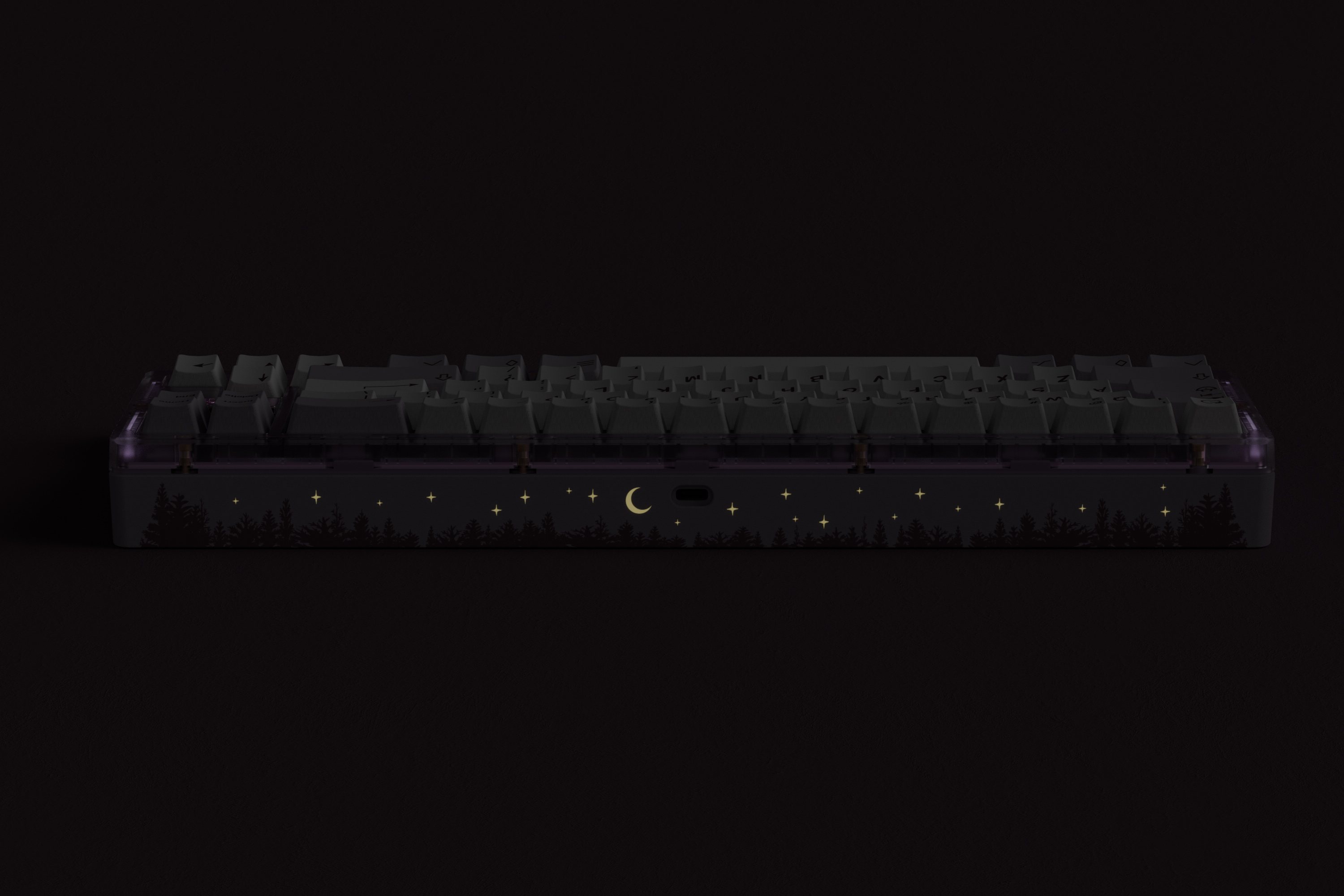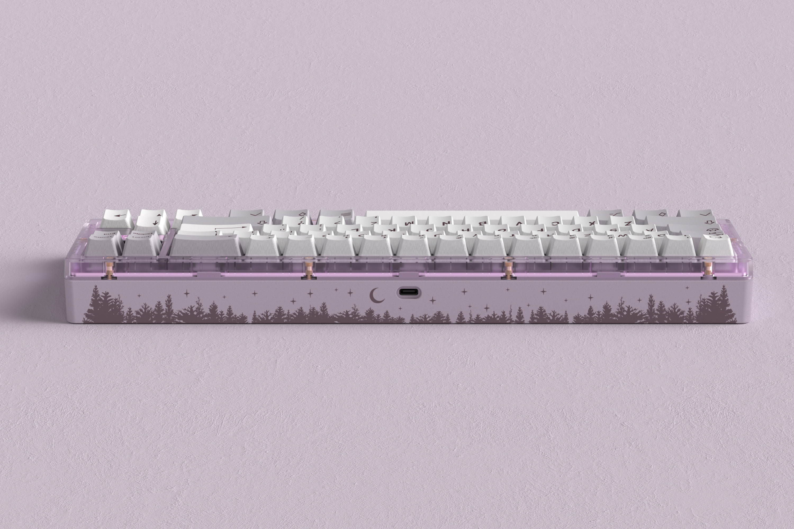 ◇ Bottom case: Based on the similar colorway of ePBT-Winter Breath's modifers (PANTON 524C). The pattern on the back of the bottom case is inspired by the pine forest.
