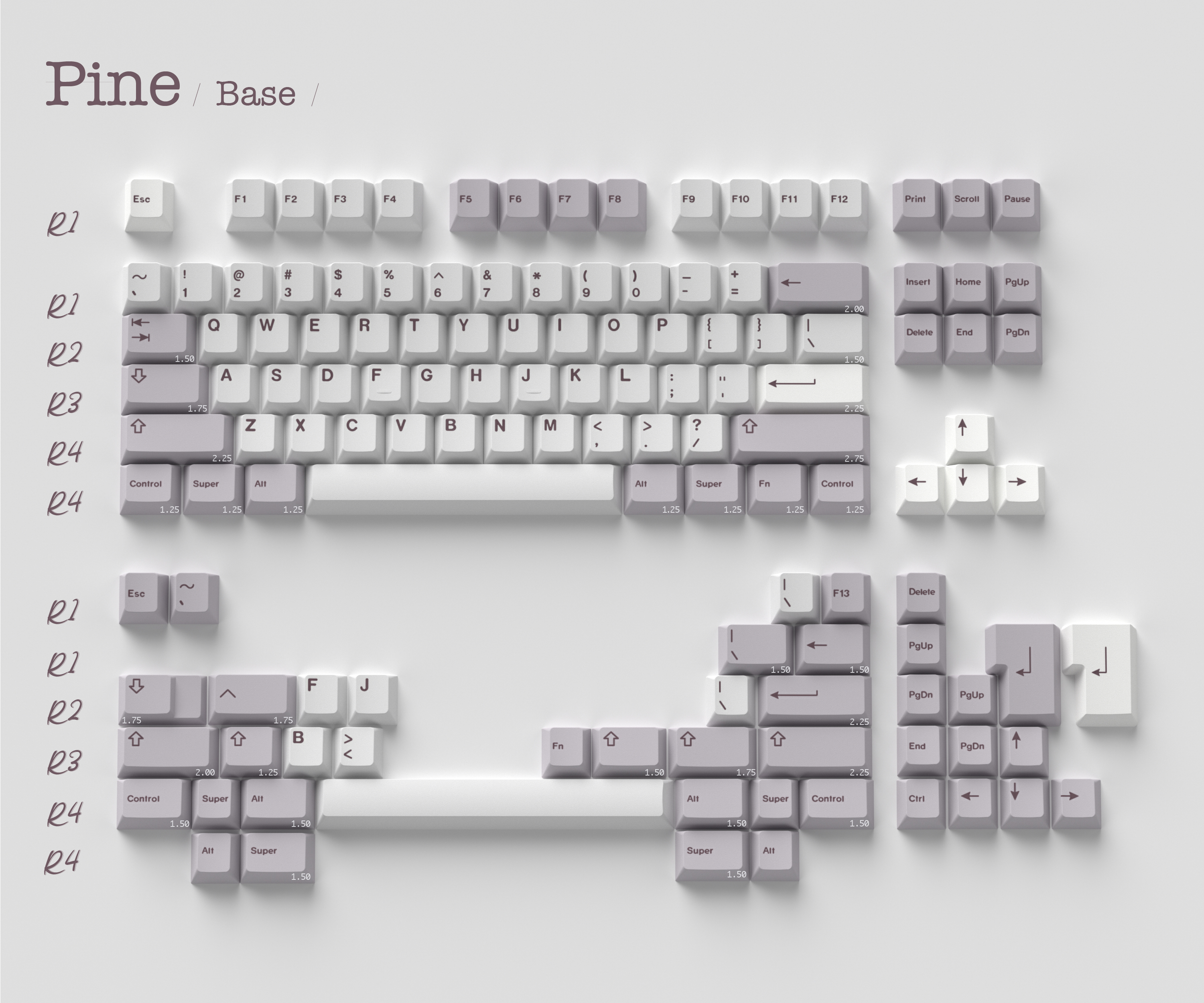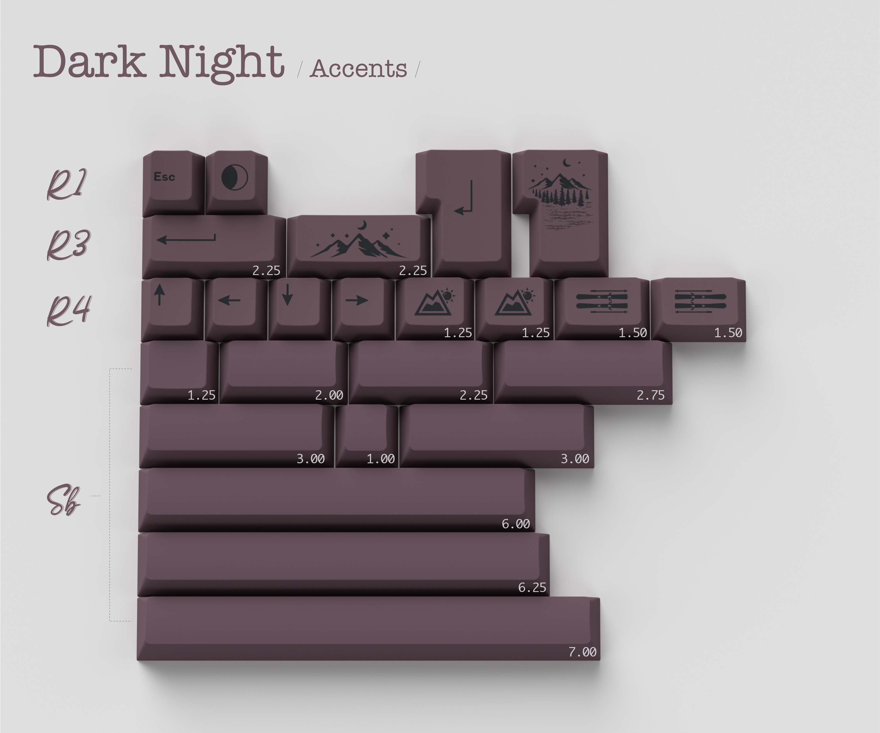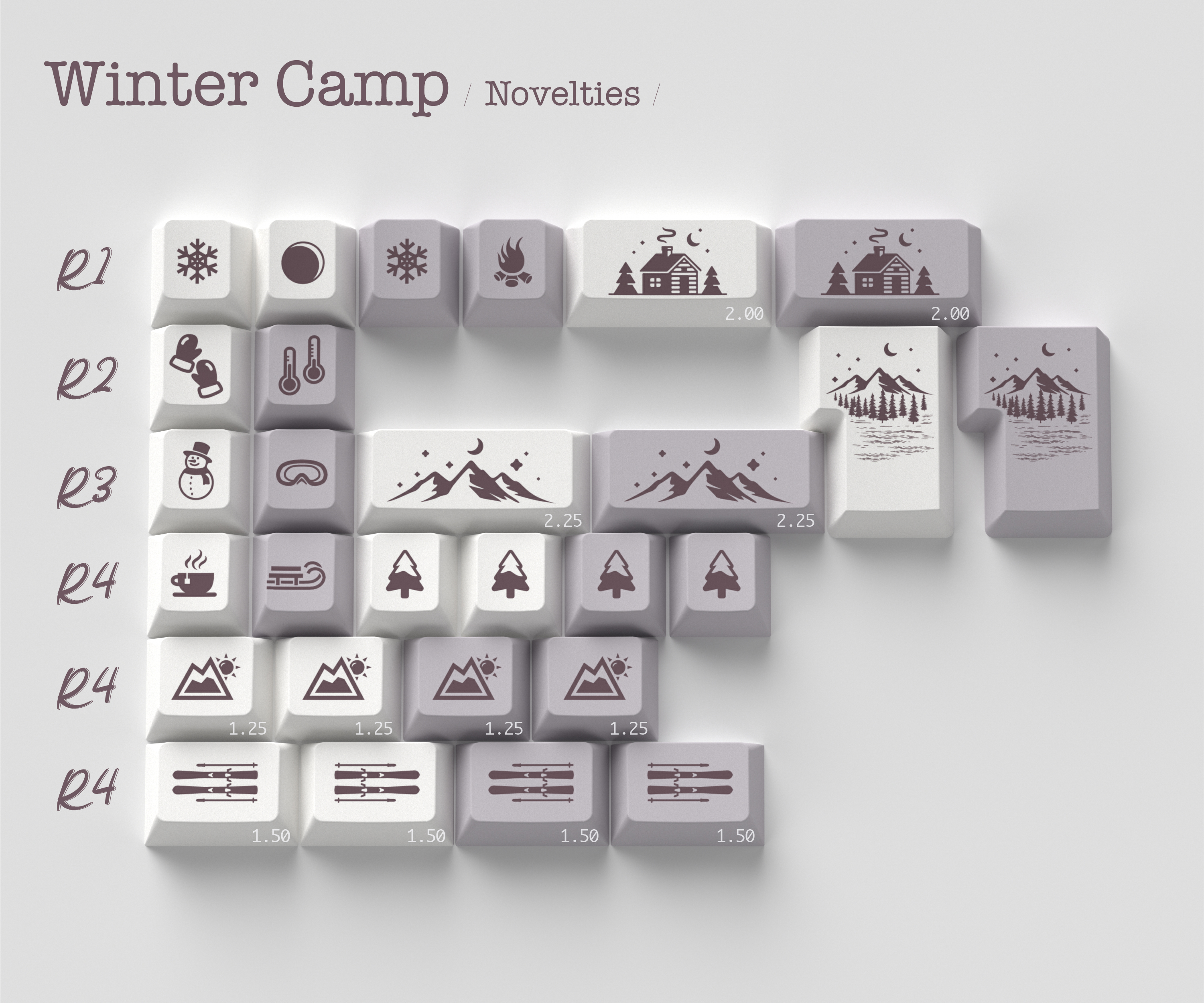 ◇ Bottom case: Based on the similar colorway of ePBT-Winter Breath's modifers (PANTON 524C). The pattern on the back of the bottom case is inspired by the pine forest.