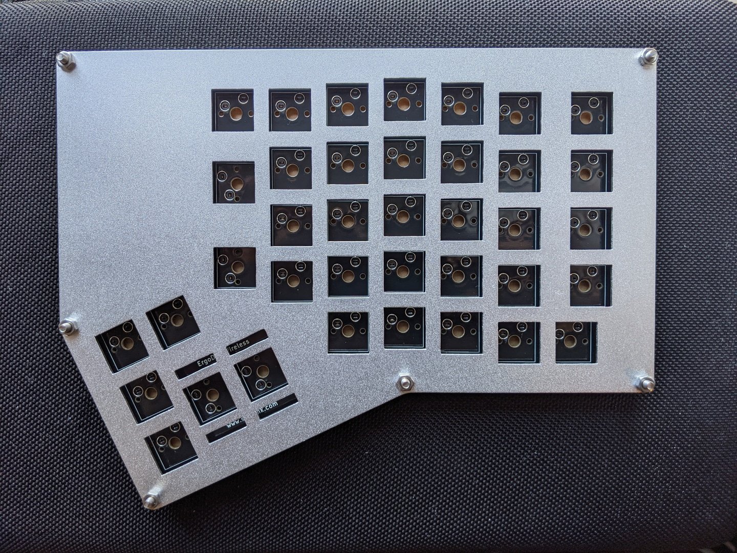 - Tenting Kit: The external tenting kit allows you to use your ErgoDox Wireless at a more comfortable angle. It is completely adjustable using screws and nuts.