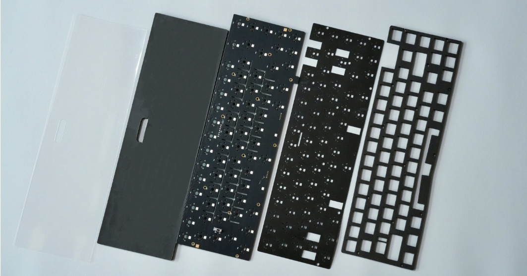 ○ PCB: 1.2mm black-core design with per-key flex cuts in the alphanumeric zone for balanced flex and stability.