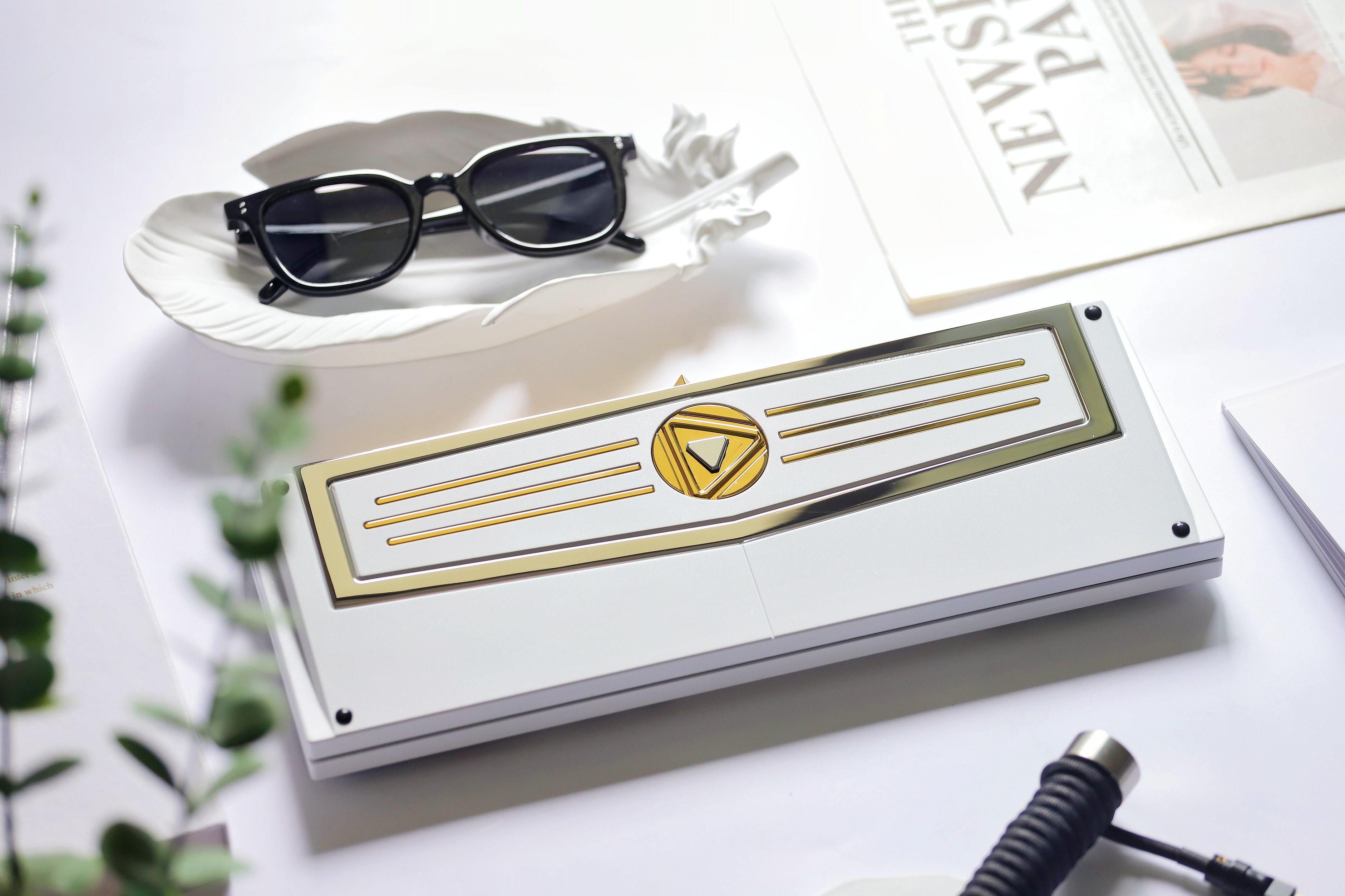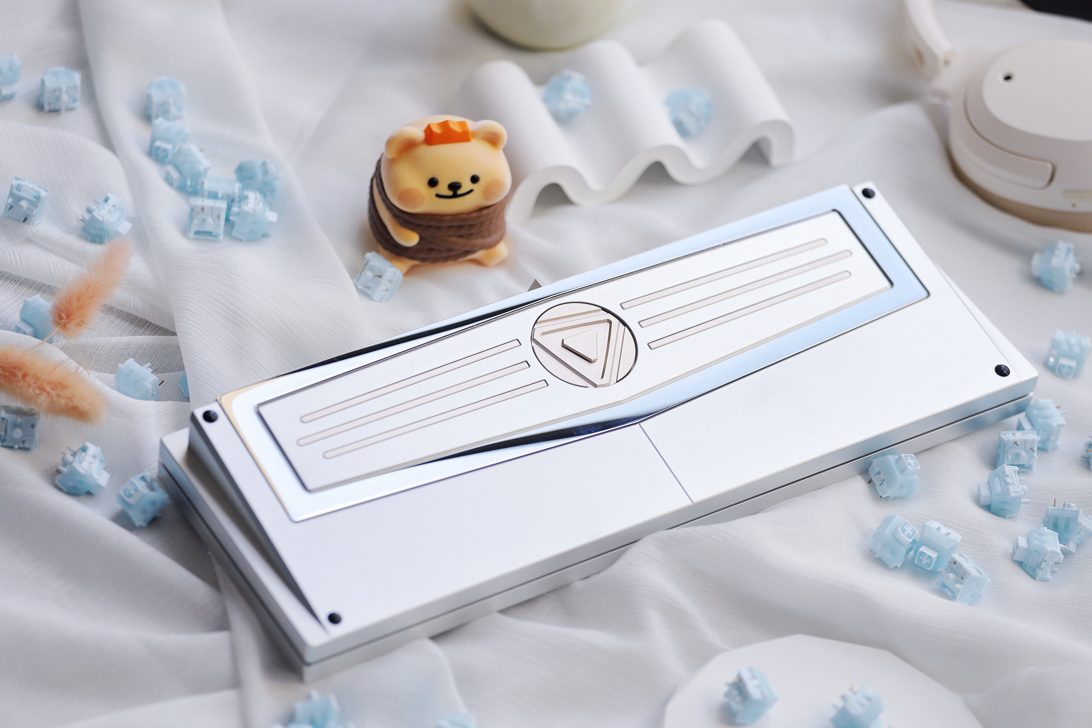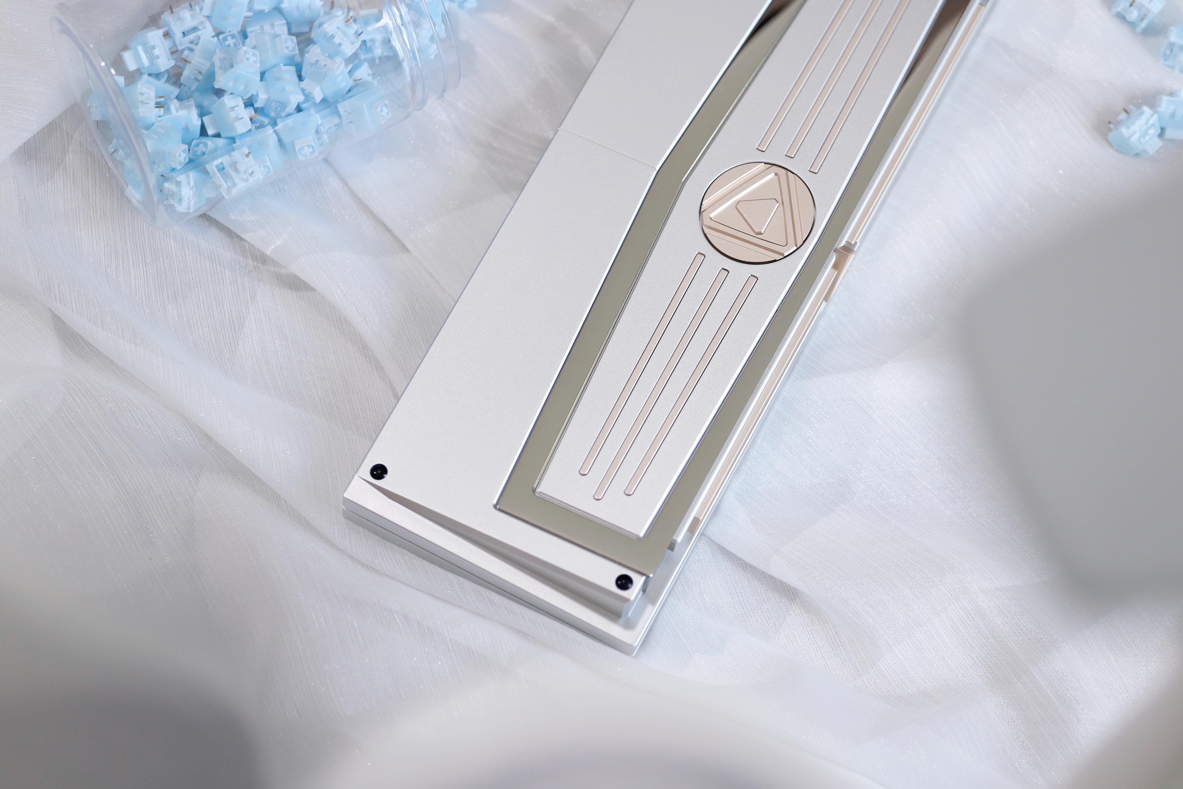 Mount: Gasket mount Connectivity: Single mode / Tri-mode Material: 6063 CNC Aluminum/ Stainless steel/ Brass Surfacing: Anodized, Spray paint Acoustic:0.5mm IXPE pad, 3.5mm Poron pad, 3 mm bottom pad, 3 mm epdm bottom pad Weight: Stainless steel PVD Support VIA & QMK (Can only be used in Windows system) No per-key RGB Net Weight: 1.2kg Weight With Package: 2.5kg Size: 313.5*112mm Default Plate: 1.6 mm thickness, With flex-cuts, FR4 material Typing Angle: 9° Compatible System: Support Windows & Mac Battery: 3600mAh (1800mAh*2) Rolling rate: 1000Hz (Wired), 125Hz (Bluetooth, 2.4G) Front Height: 18.7mm, R4 Height 19.7mm Caps indicator light: No Latency: 3ms(Wired), 8ms(Bluetooth) Add on: FR4/PC/Alu Plate without flex cuts